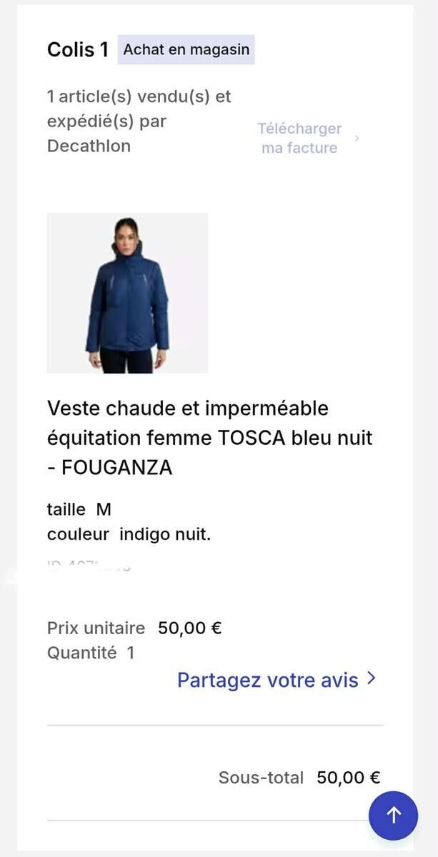 Veste Fouganza de chez Décathlon, modèle Tosca, couleur bleu nuit