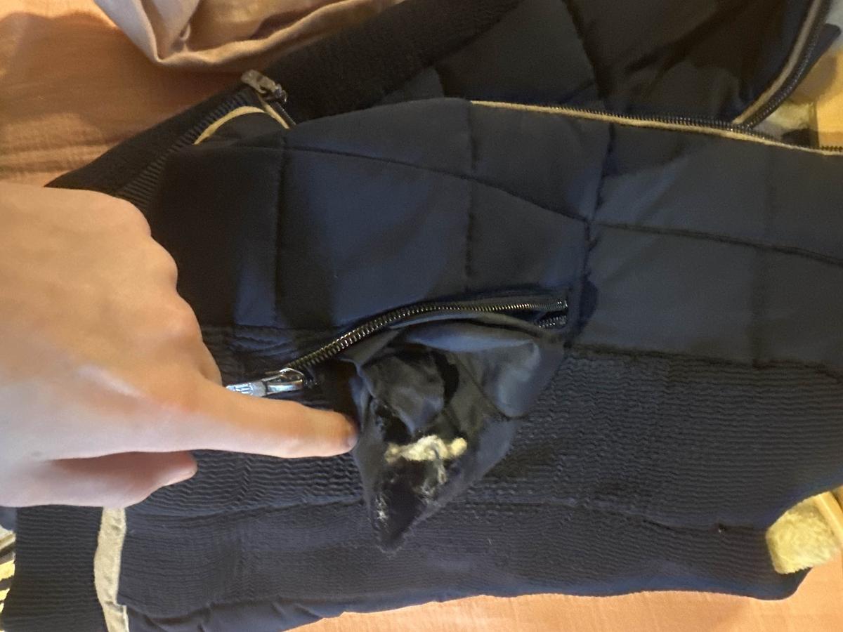 il n’y a pas la capuche sur la photo mais je l’ai bien ! taille junior trou dans la poche gauche