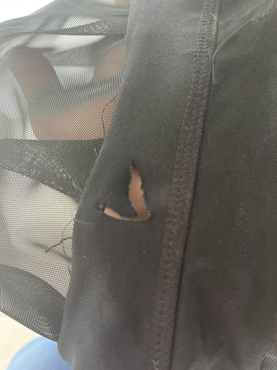 Bonnet anti mouche Kentucky peu porté car trop grand pour mon poney donc il faisait que l’enlever, malgré les peu de fois où il l’a porté il l’a bien abîmé, un petit trou est visible sur le devant mais ne gêne en rien l’utilisation du bonnet, au dessus il a était recousue car mon poney l’avait troué, le bonnet sera lavé avant envoie, c’est une taille full