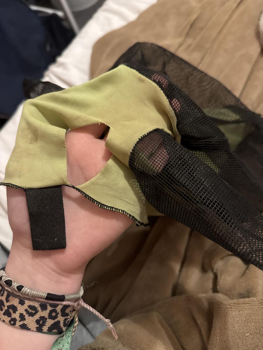 Masque anti mouche vert taille poney sera laver avans l’envoie il a un trous pour le toupe