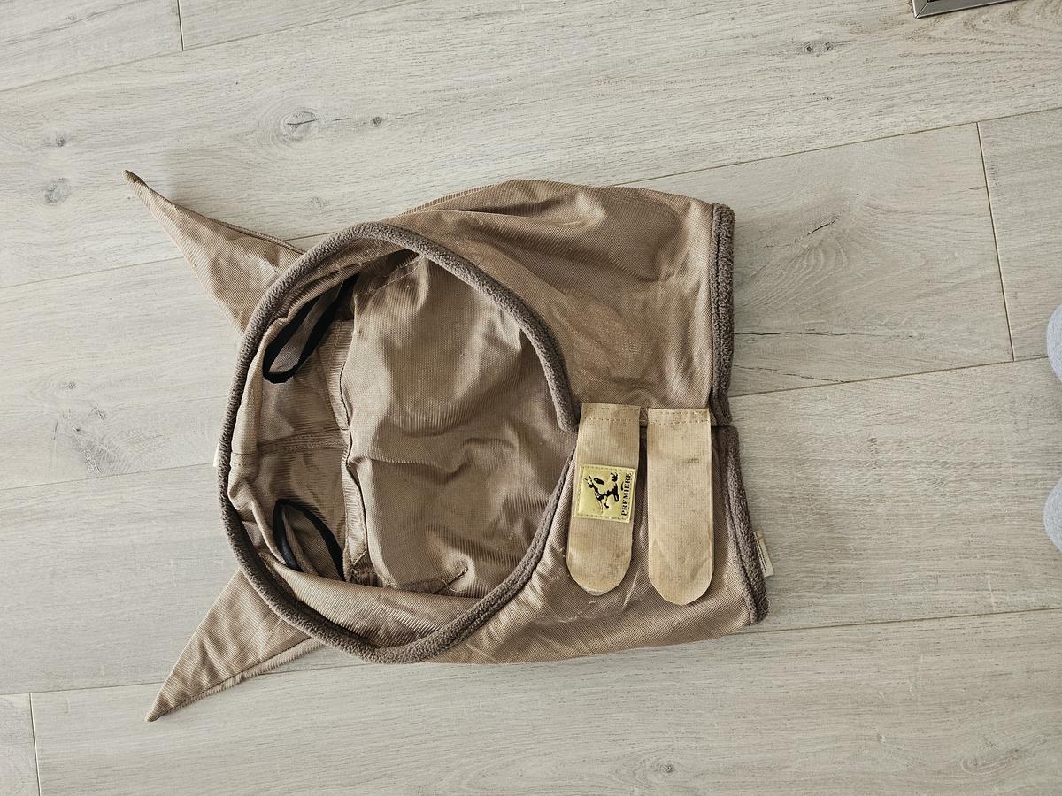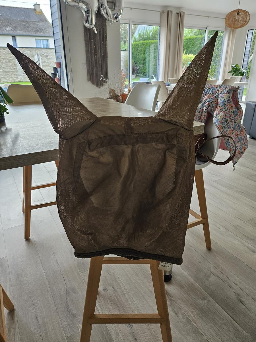 Deux masques anti-mouche taille full, portés une saison. Tarif pour un masque.