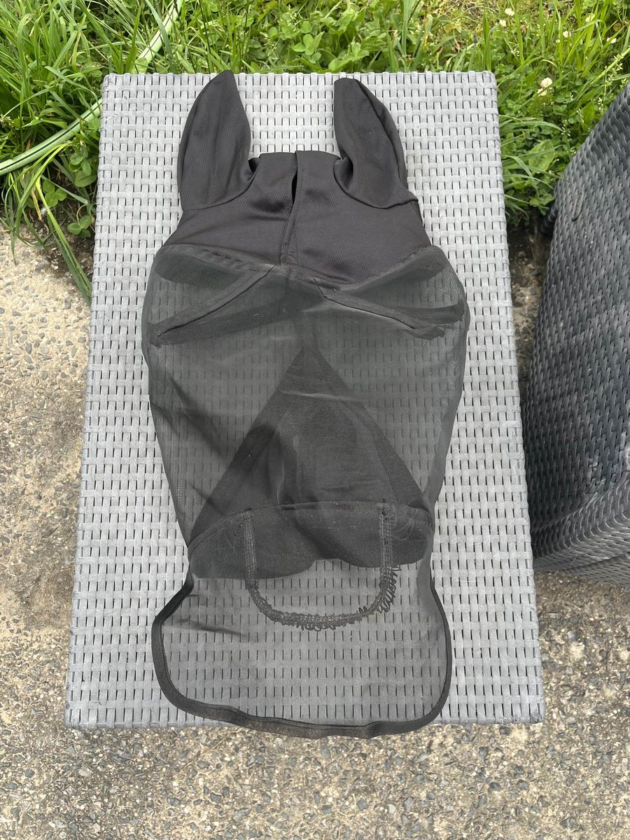 Masque anti mouches de la marque Covalliero, laissé quelques heures sur ma jument, il lui est finalement trop grand.
