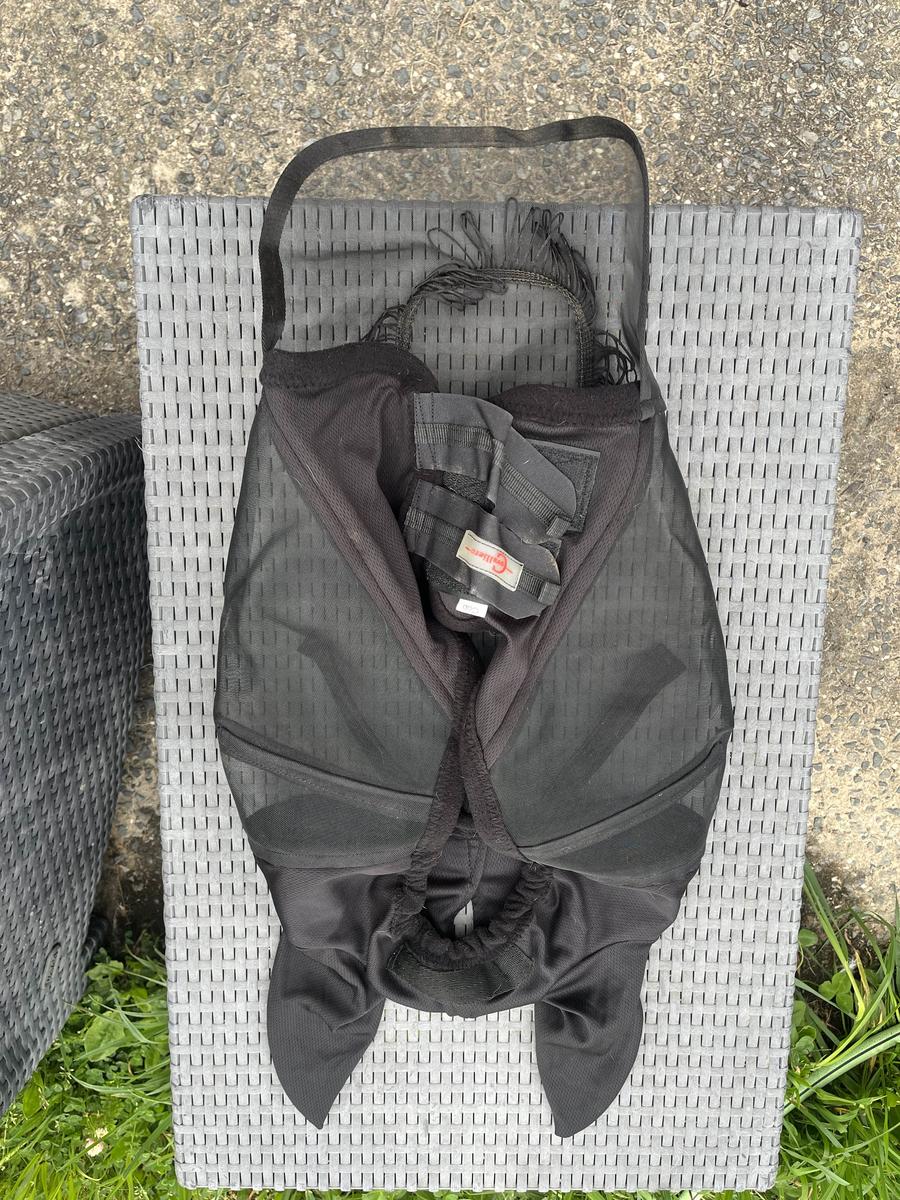 Masque anti mouches de la marque Covalliero, laissé quelques heures sur ma jument, il lui est finalement trop grand.