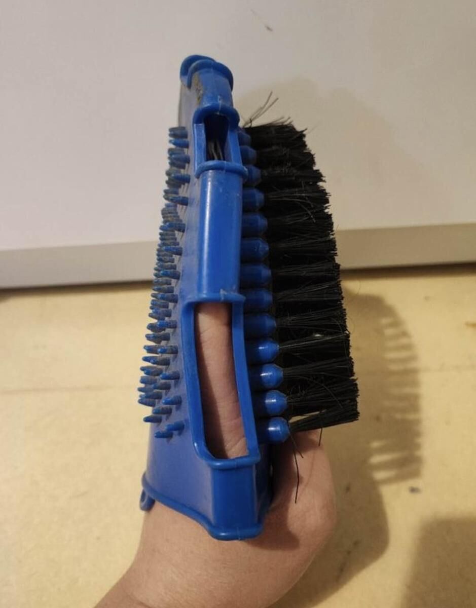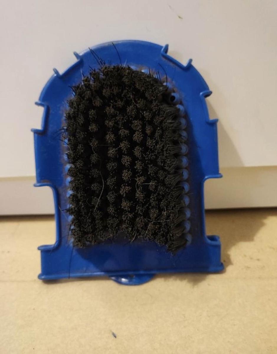Elle a un côté entre brosse dure et douce et un côté brosse gratte gratte.