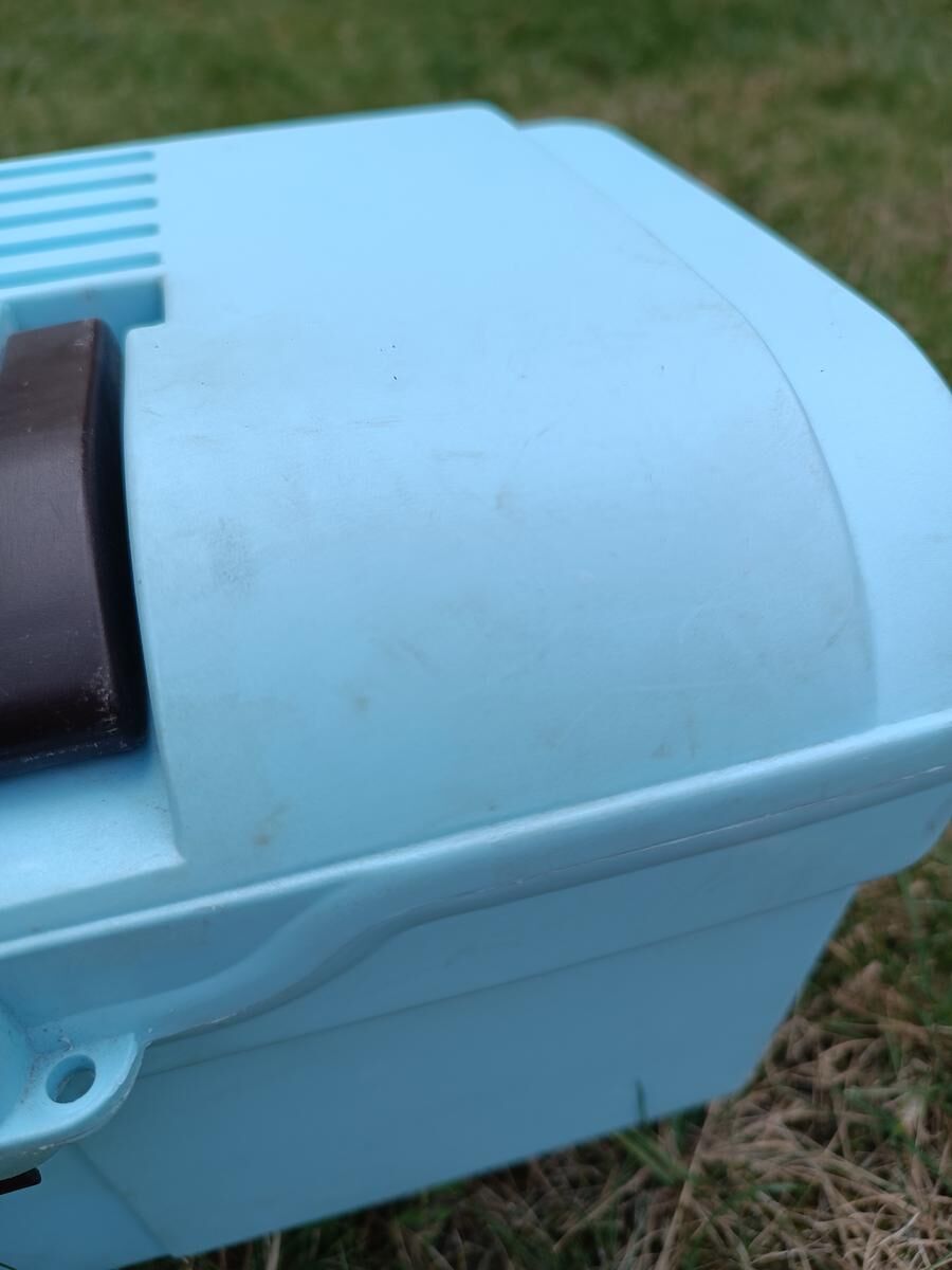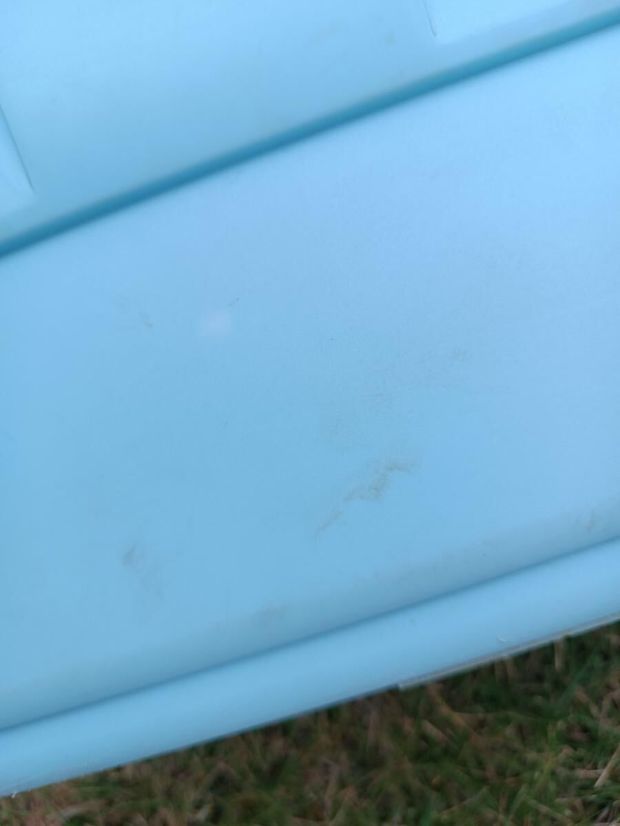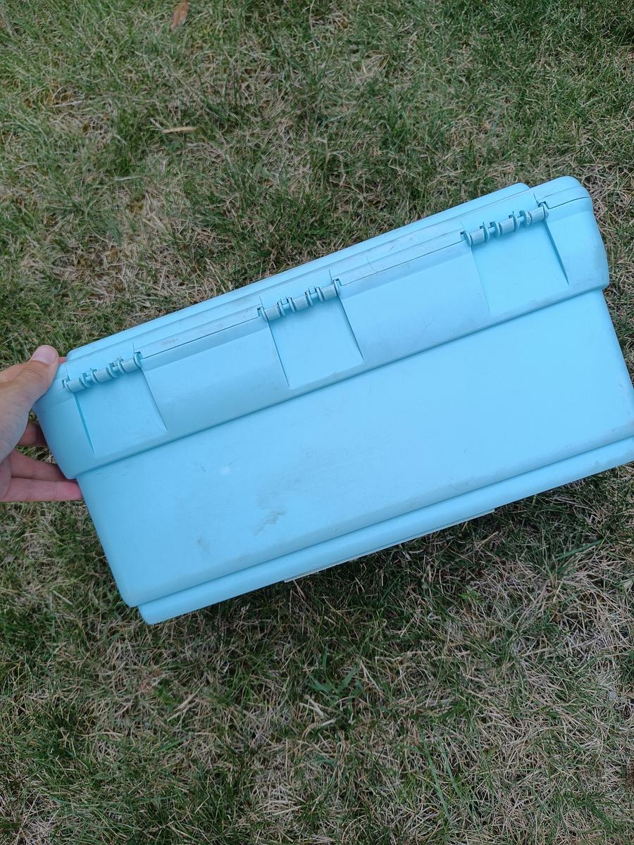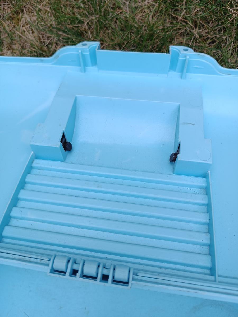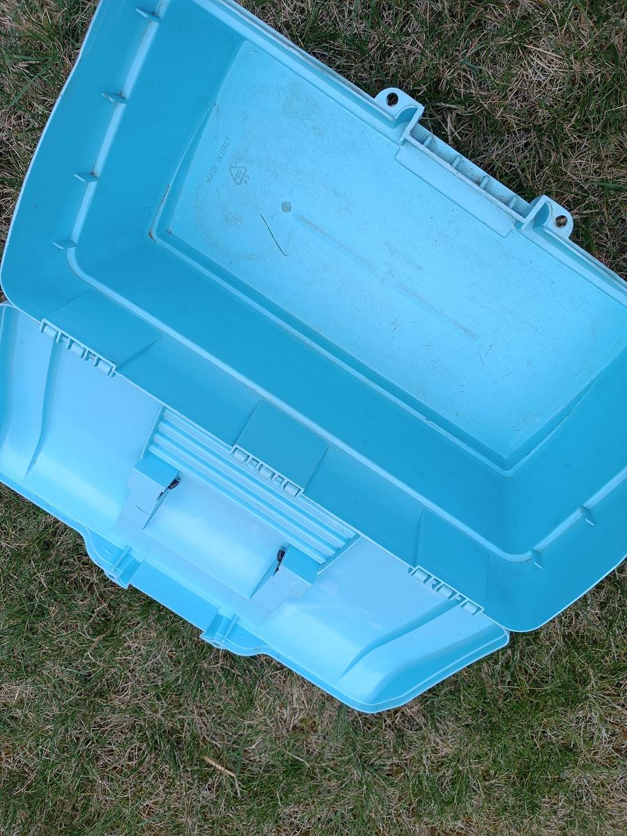 Boite de pansage bleue Fouganza. Traces d'usure visible mais reste en très bon état ! Vendue sans brosses.