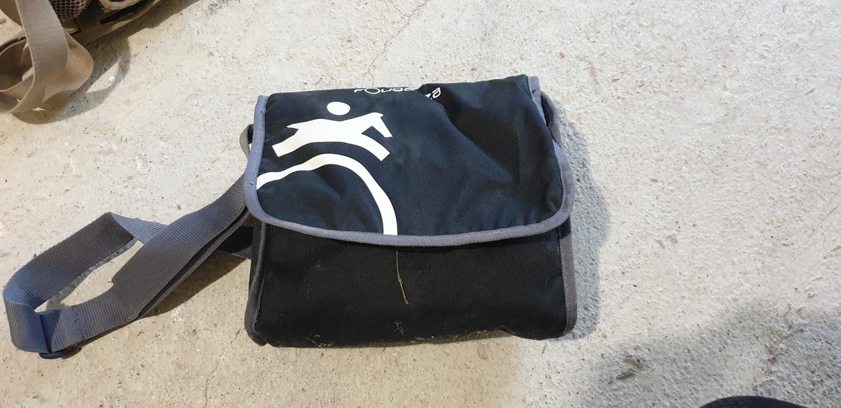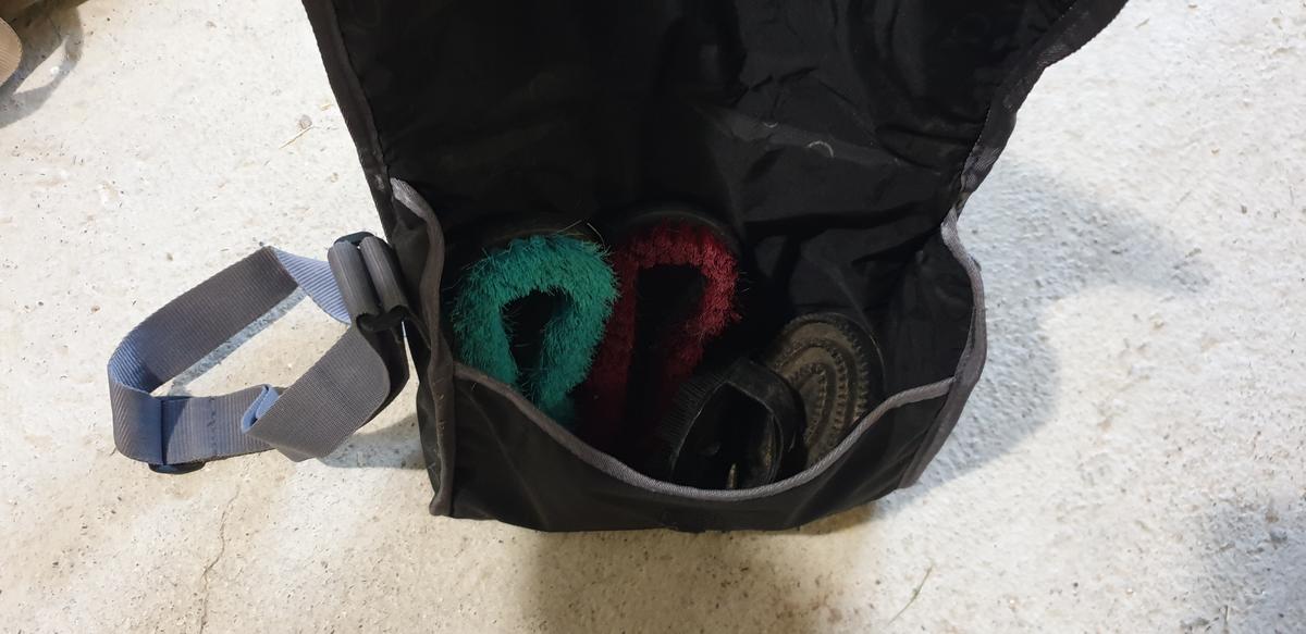 Petit sac de pansage avec une bosee douce, un bouchon, étrier ronde et une étrie qui peut servir de brosse a crin