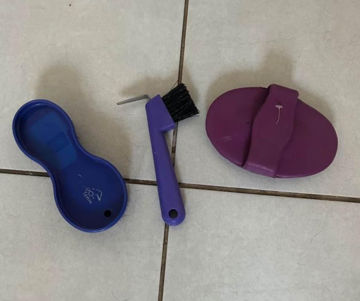 Bonjour à vendre lot de trois brosse violette une étrille, un curé pied, et une magic brush
