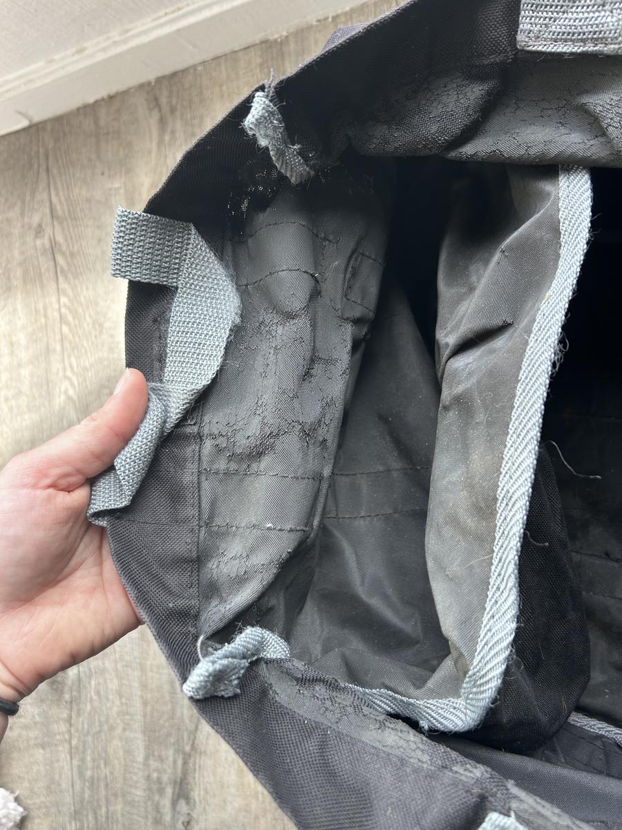 La partie abîmée est le tour du sac à l’intérieur