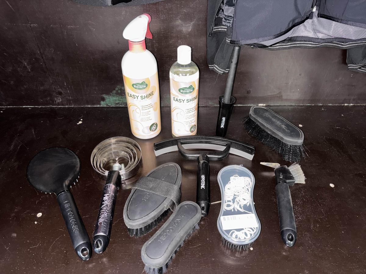 sac de groom avec tout ses accessoires d’entretiens pour équidé. Les produits sont neuf si ce n’est qu’utilisé 2 fois le démêlant.