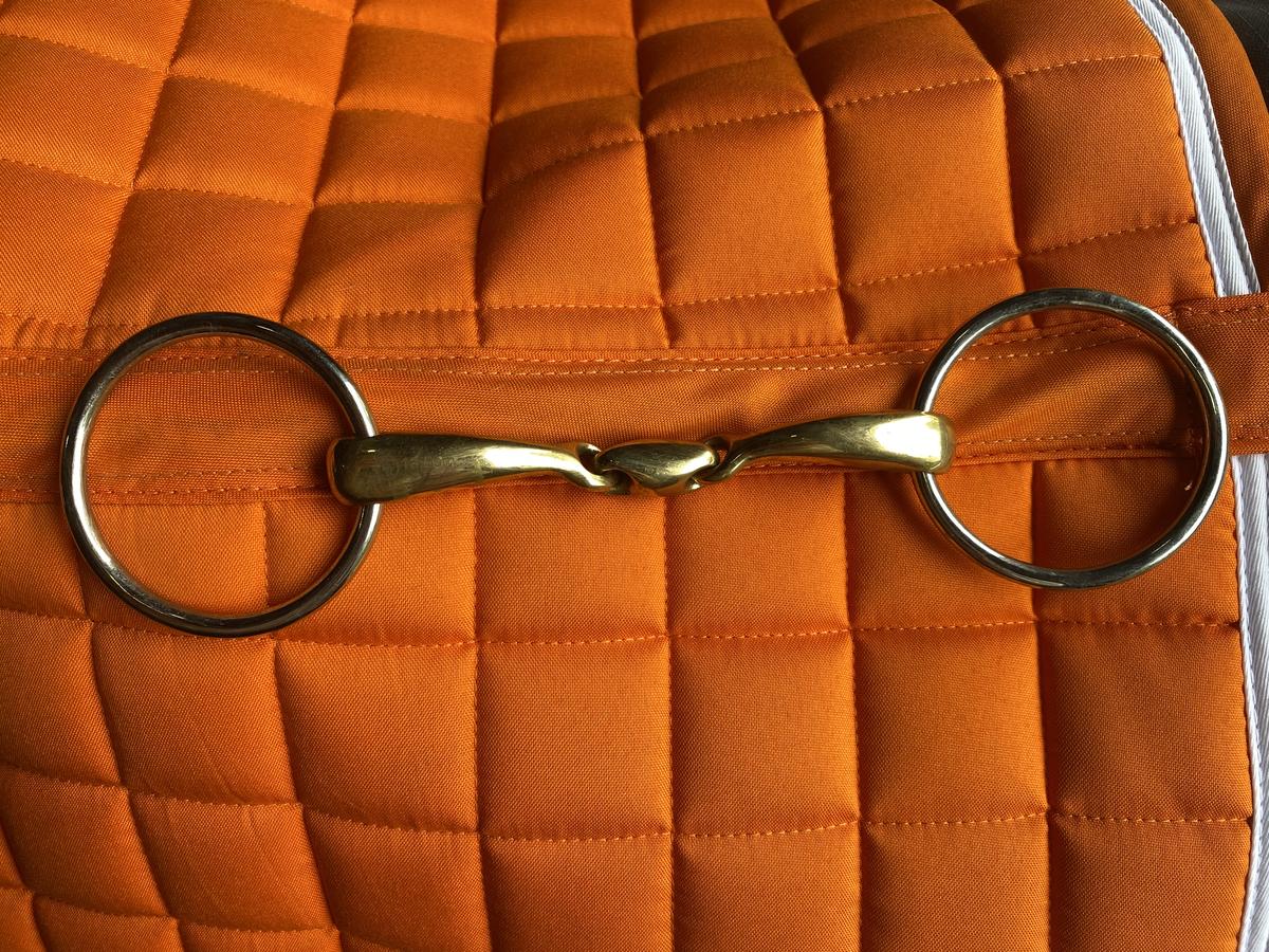 Je vends un mors double brisures jamais utilisé jamais mis dans la bouche de mon cheval . Taille 13,5 cm