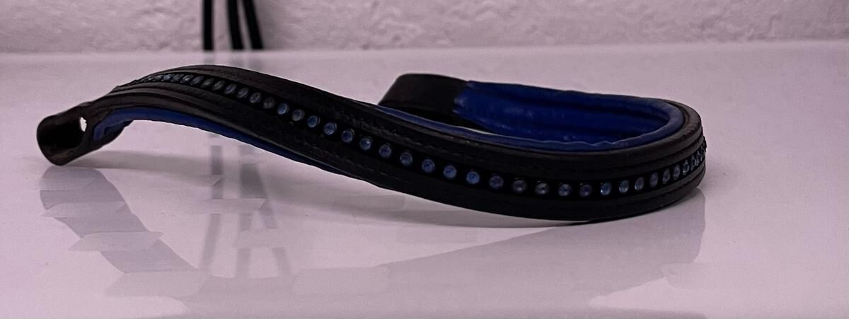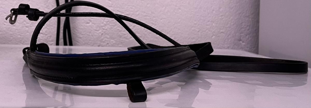 Muserolle et frontal taille cheval en cuir de couleurs noir et bleu
