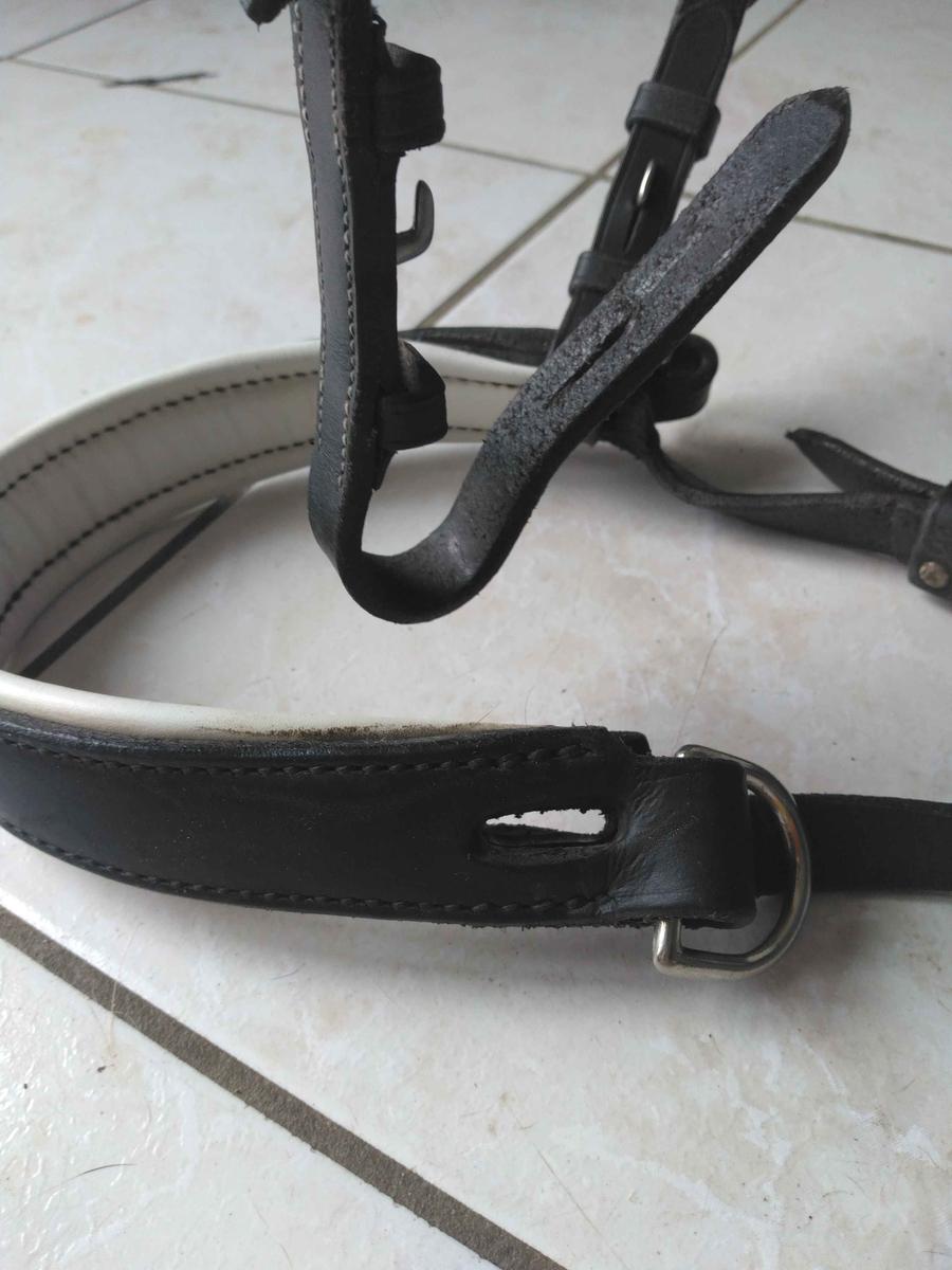 Muserolle sidepull en cuir noir et doublure blanche