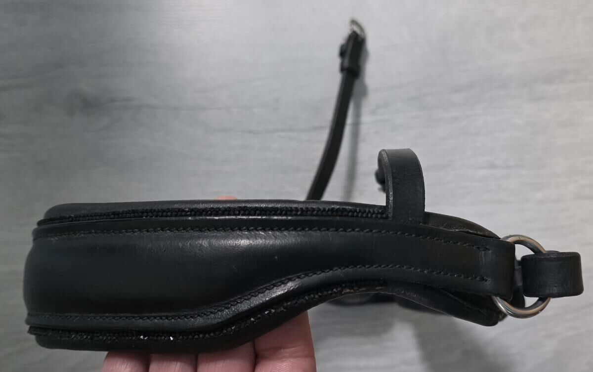 Muserolle S1 dressage glitter noir , marque : Bridle2fit, cuir noir mat, taille: cheval.