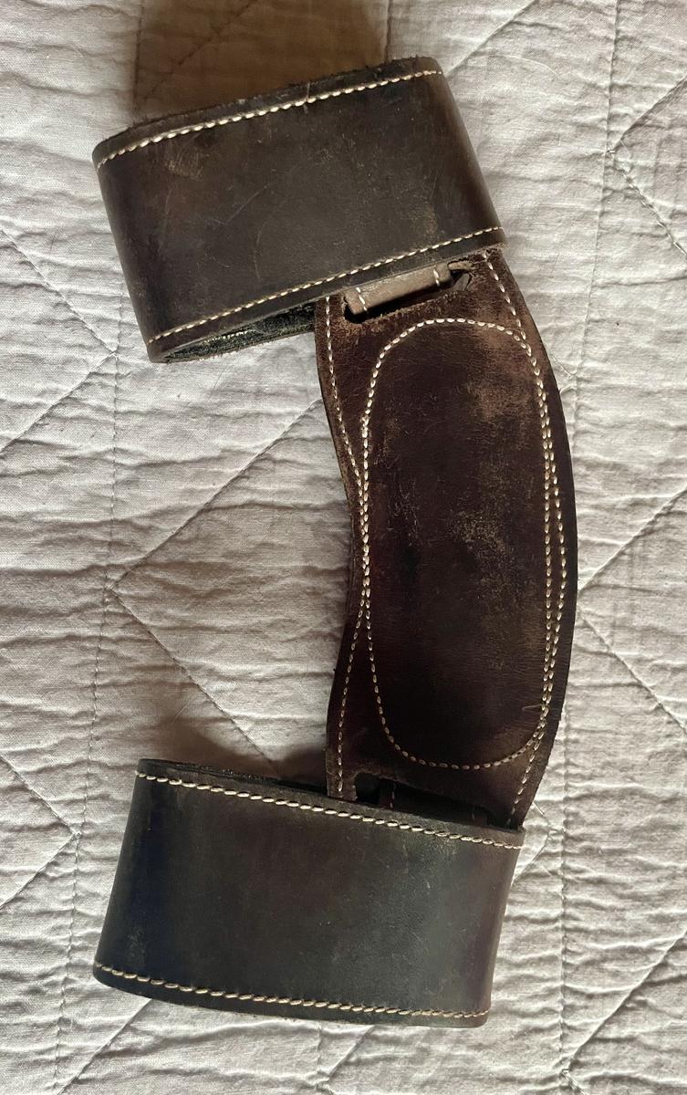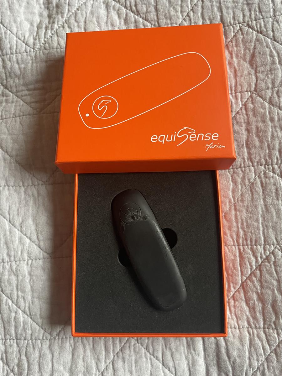 Capteur Equisense Motion ONE avec adaptateur sangle en cuir brun.