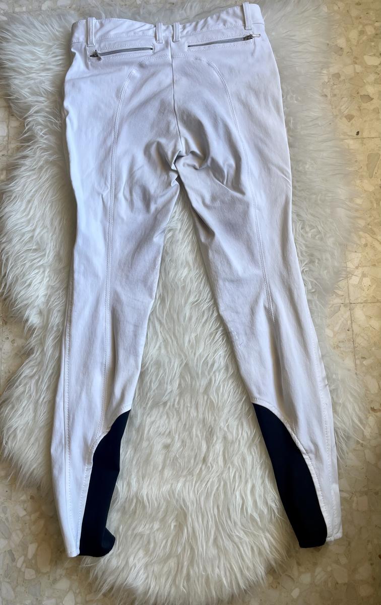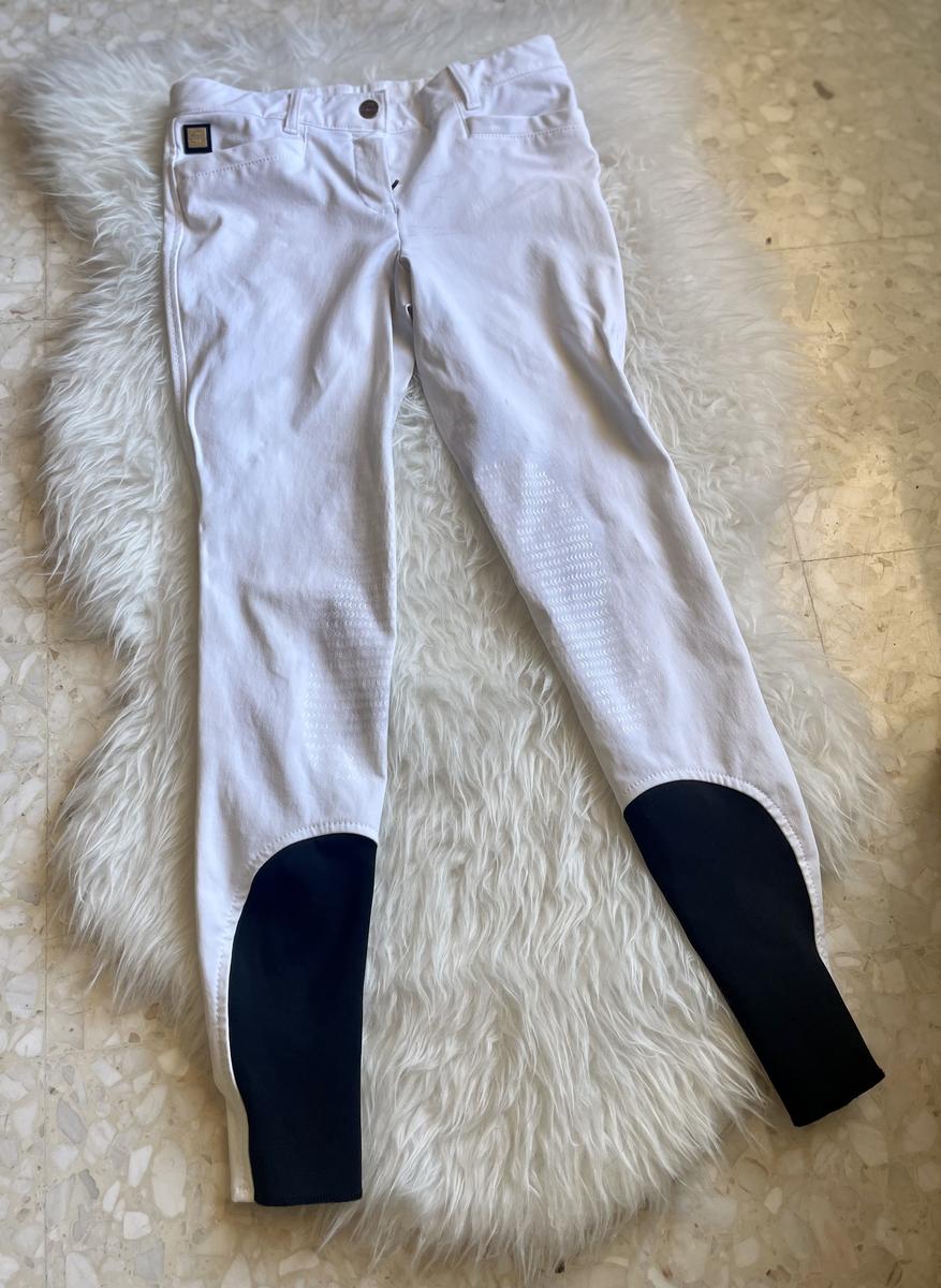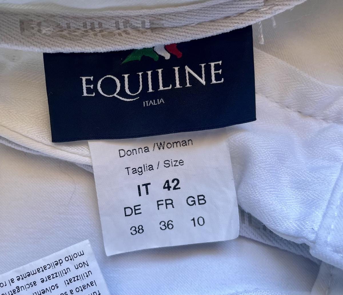 Pantalon concours, blanc, de marque Equiline , utilisé 3 fois, très bon état , légères traces noires . Pas de grip. Taille 36