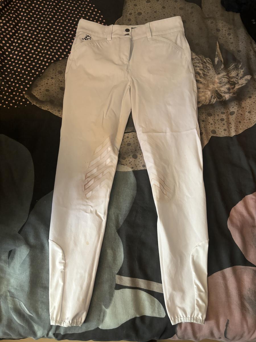Pantalon blanc de concours femme Anna scarpati avec gripp en silicone au niveau des genoux