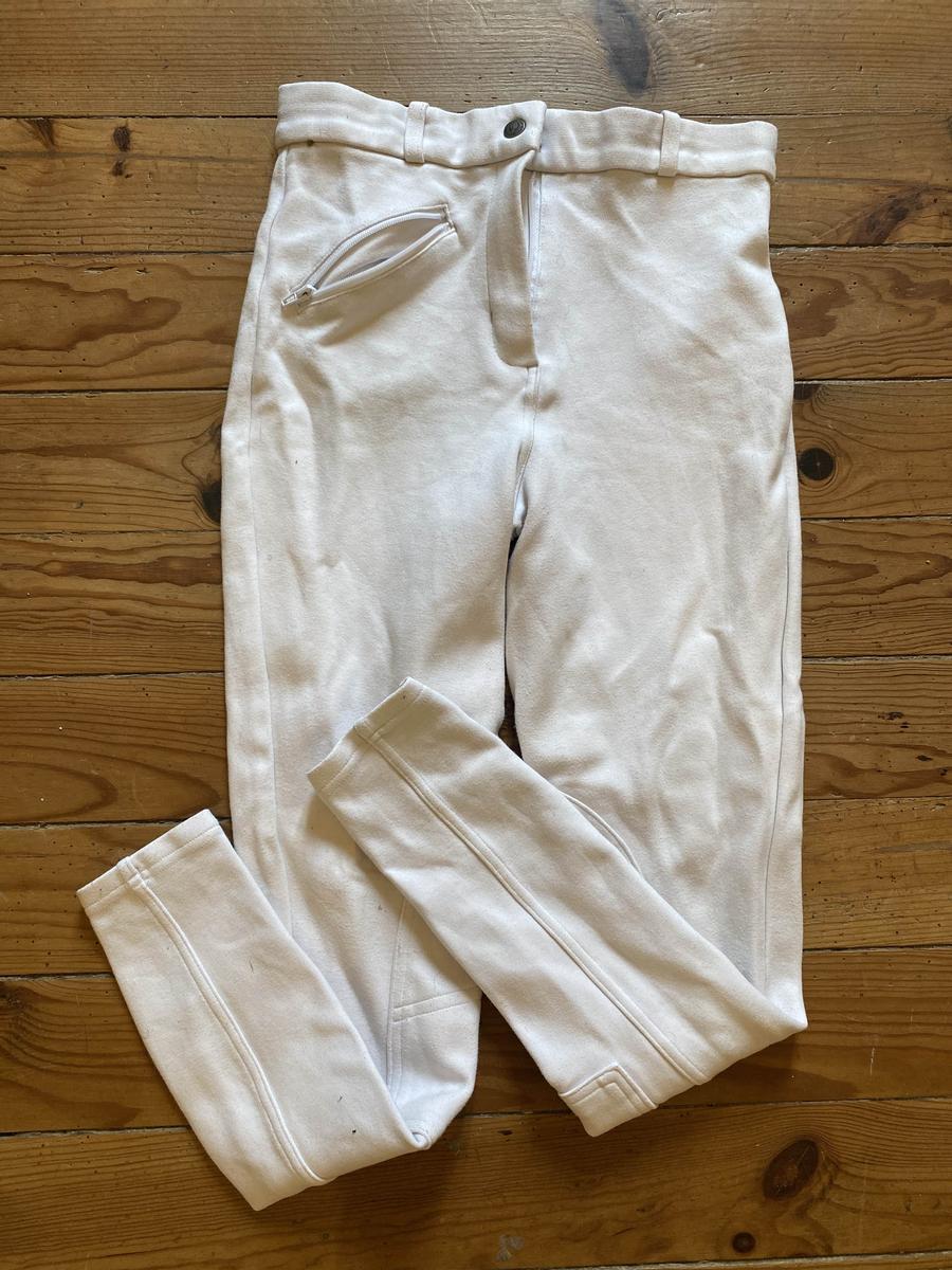 pantalon blanc de concours avec une poche. Portée une ou deux fois en concours. Mais reste en très bon état malgré une petite tache à l’arrière.