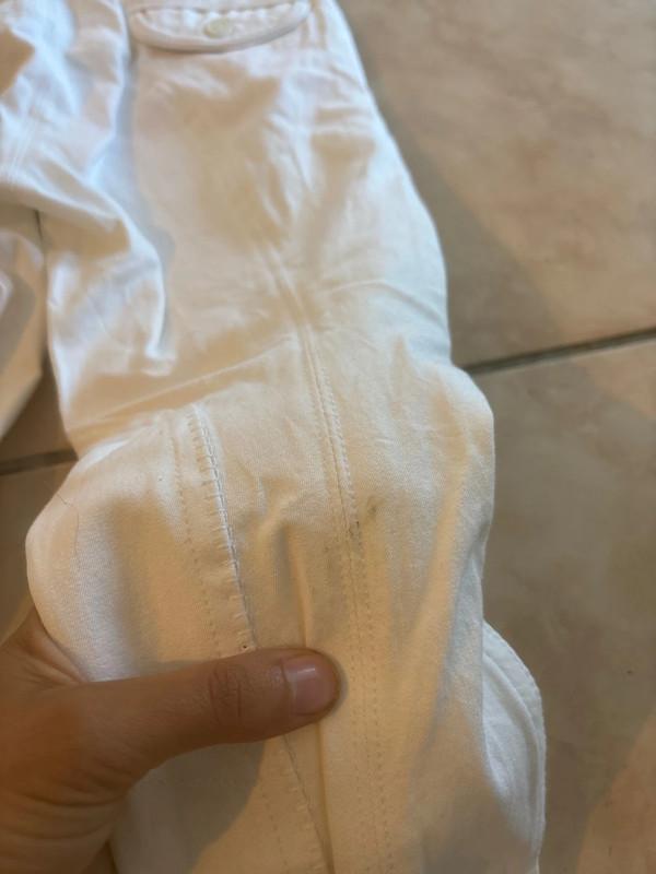 Particularité : Légèrement taché (voir photo). Je pense que cela partira facilement en machine, mais je n'ai pas essayé pour ne pas retirer l'étiquette.