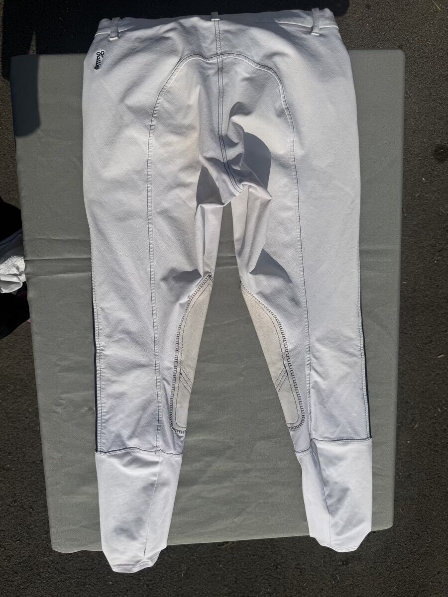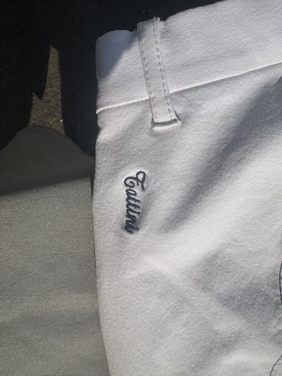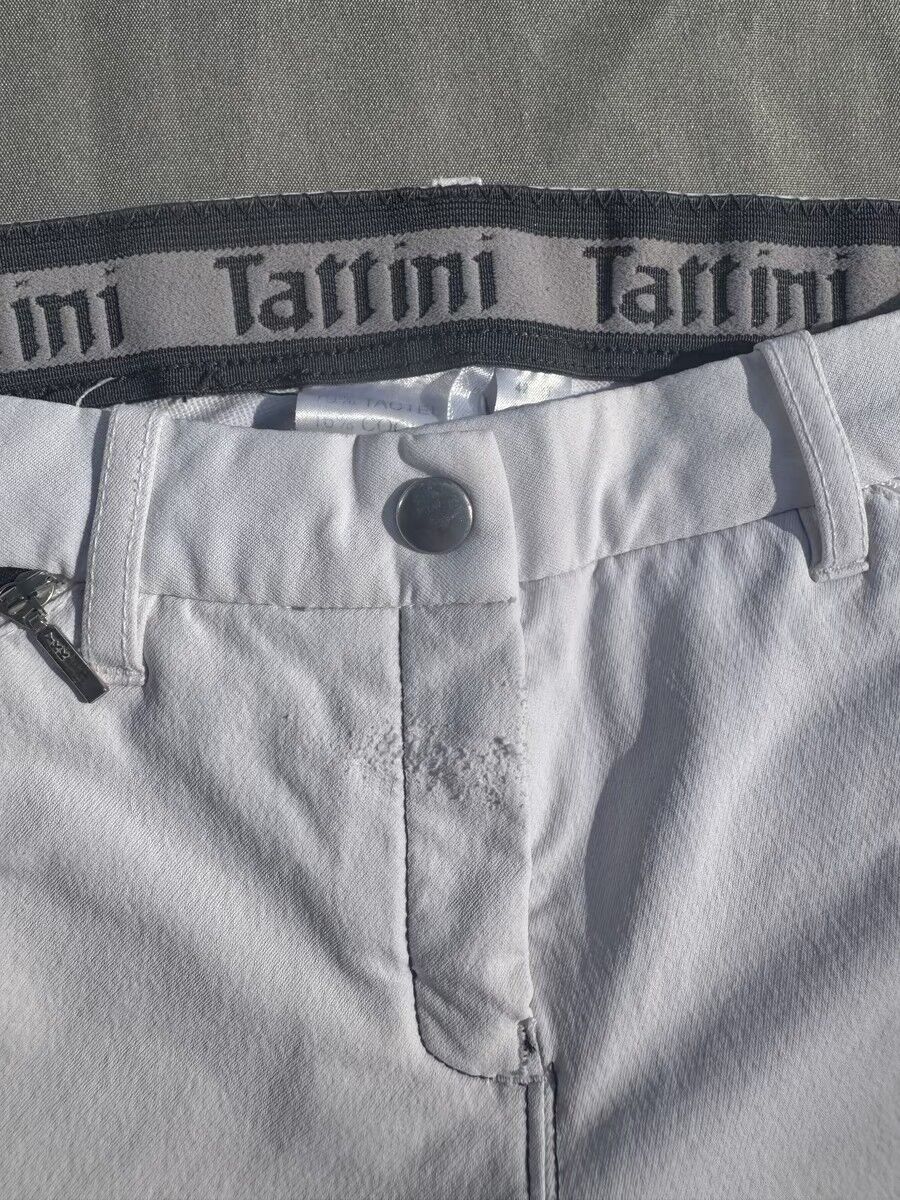Pantalon blanc détails poche bleu marine Tattini taille 38, légère usure au niveau de la braguette.