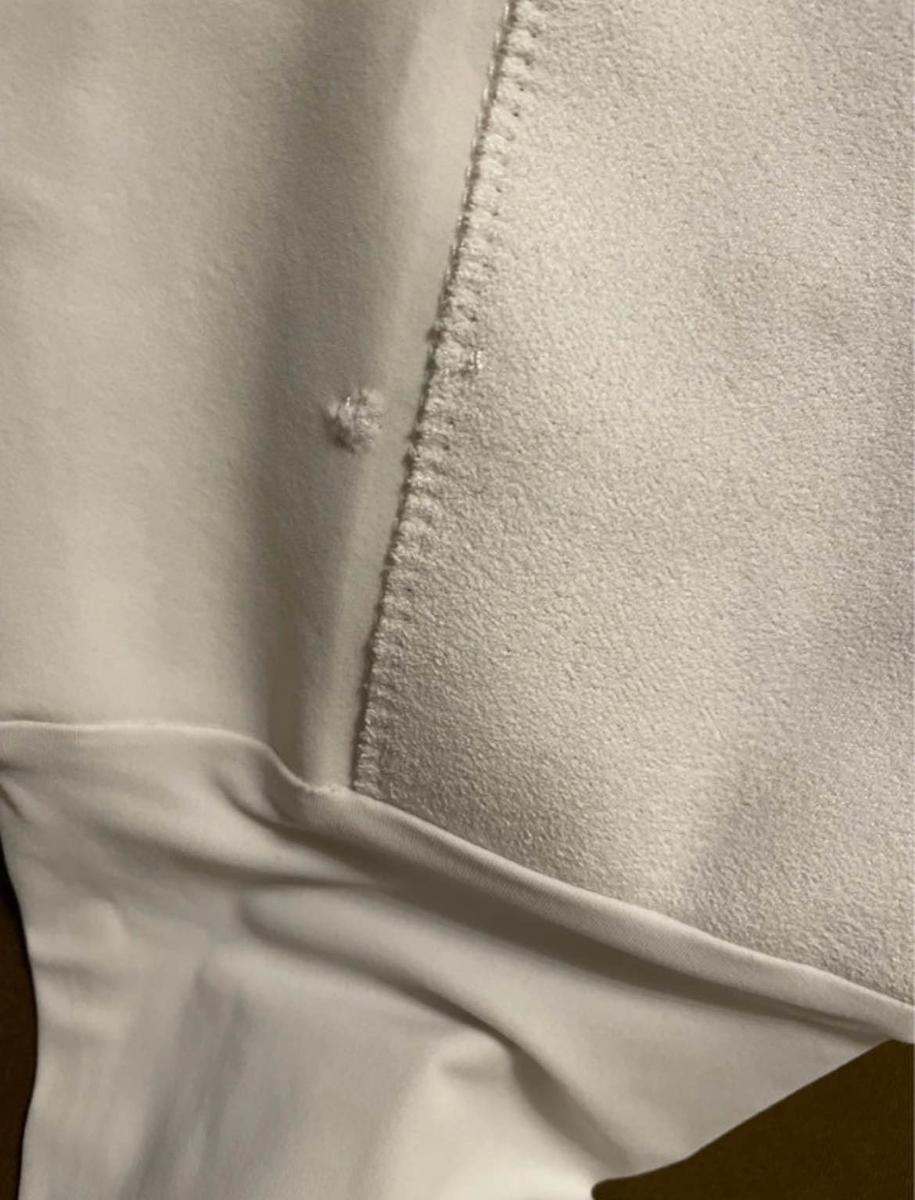 Pantalon blanc concours très peu porté comporte un lege défaut au niveau du tibia mais ne se voit plus et ne s’agrandit pas une fois les chaussettes misent