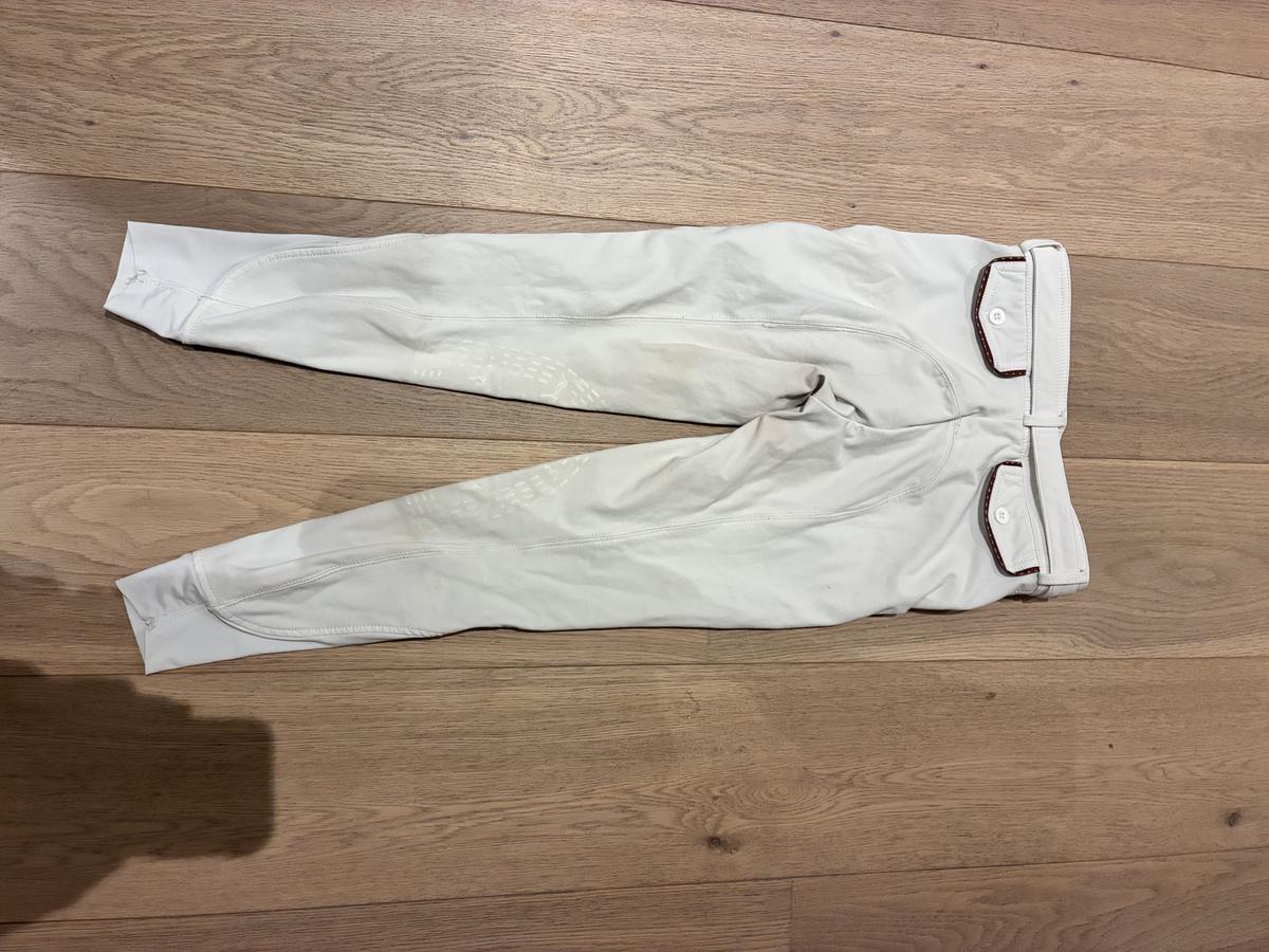 Il taille normalement (12 ans) et n'a pas été beaucoup porté. L'intérieur des cuisses est très légérement moins blanc du au fait que la selle a deteint.