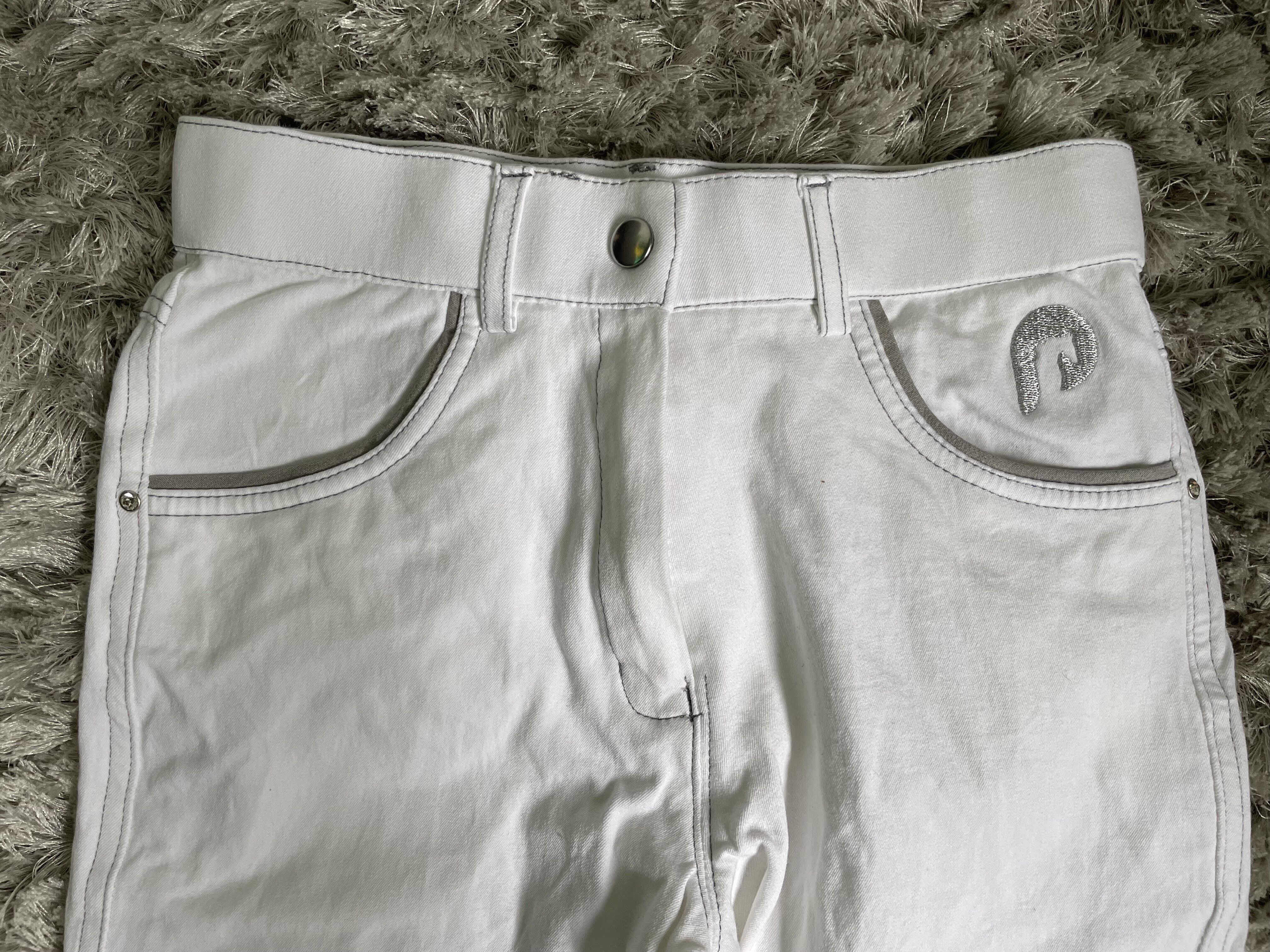 Pantalon blanc d’équitation Performance avec détails gris / argenté.