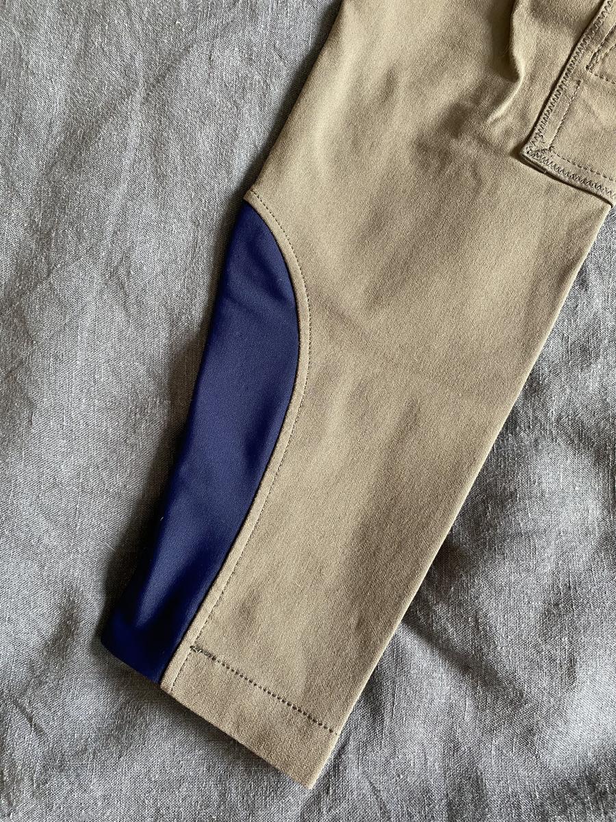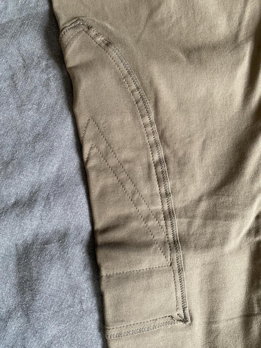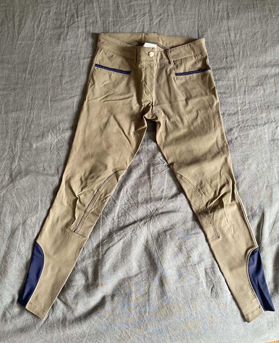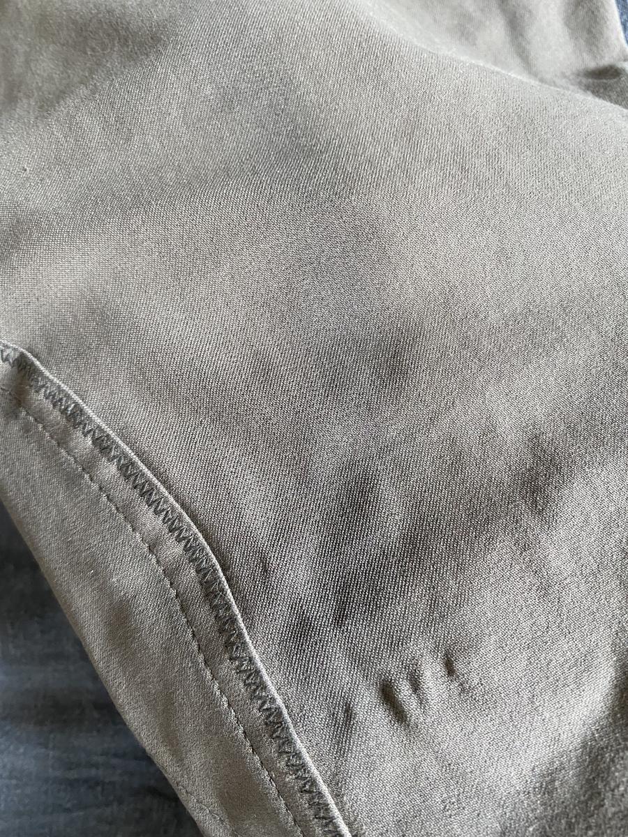 Coutures impeccables, seulement légères traces de frottement contre cuir sur cuisses et entrejambe.
