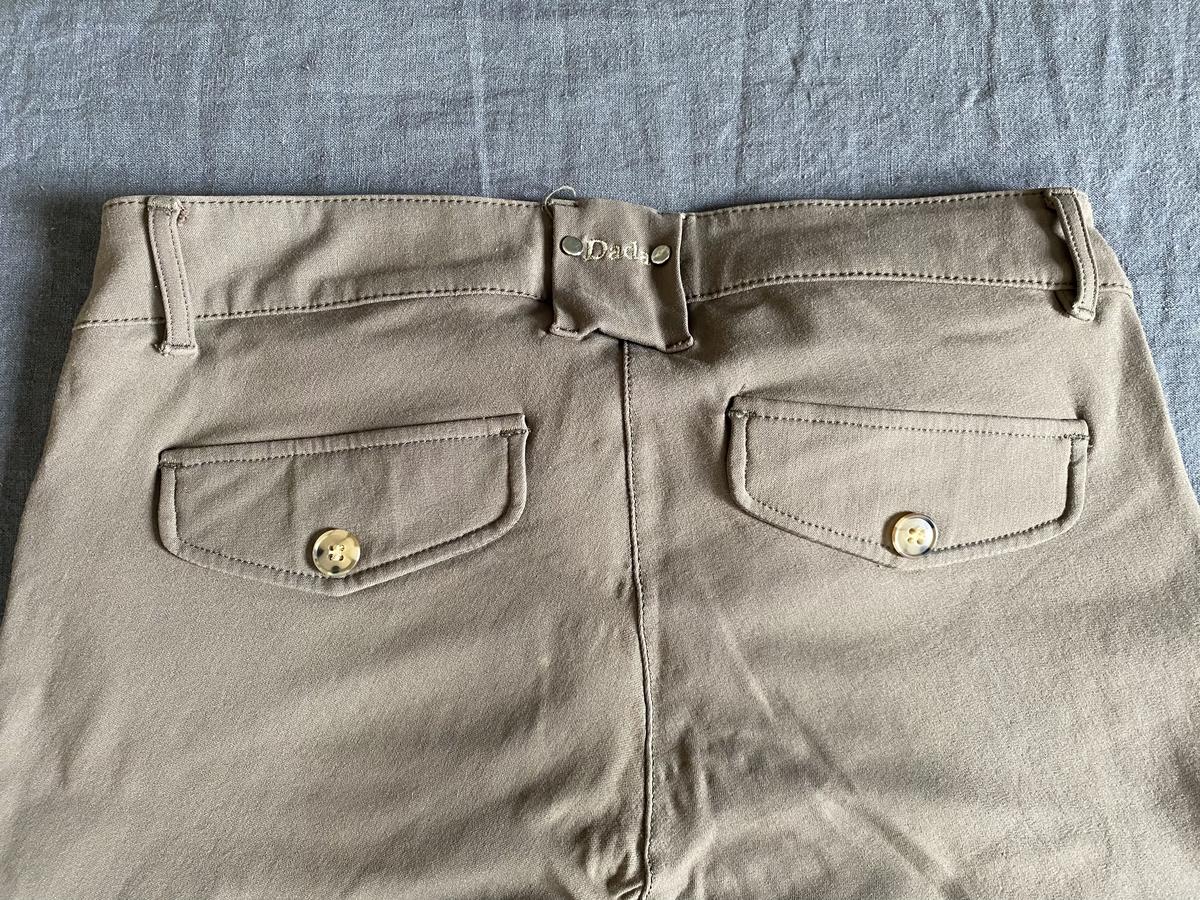 Coutures impeccables, seulement légères traces de frottement contre cuir sur cuisses et entrejambe.