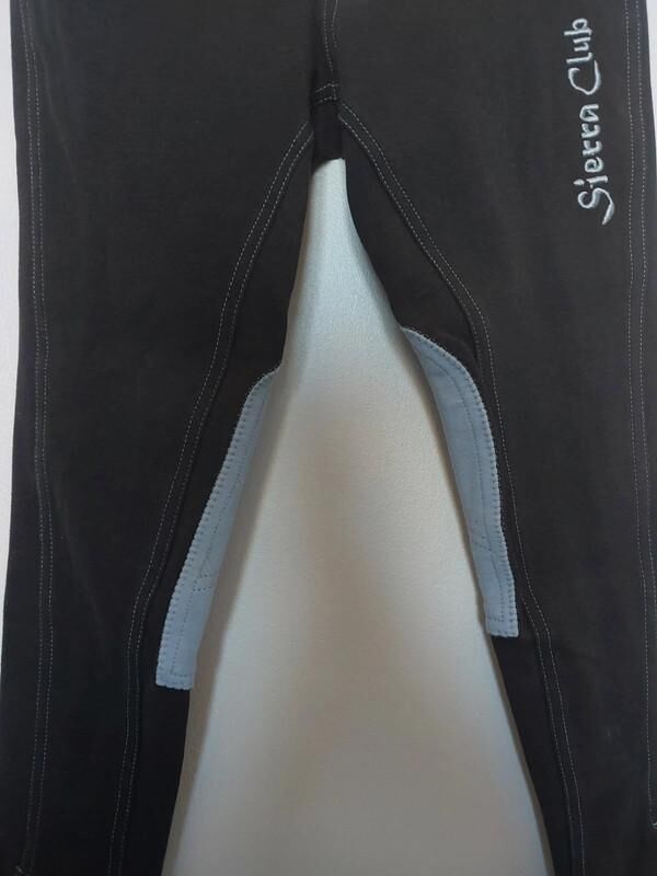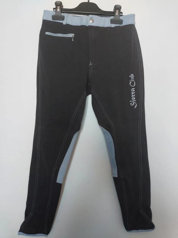 Pantalon d'équitation bleu ciel et marron de la marque Sierra riding. Une vraie poche à l'avant. Se ferme avec des scratchs sur le bas. Taille 14 ans.