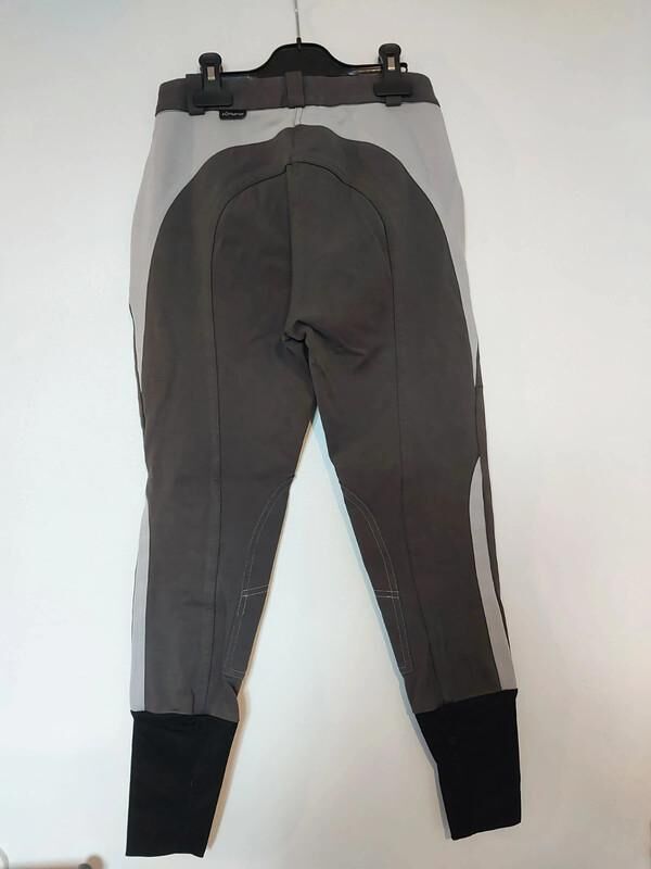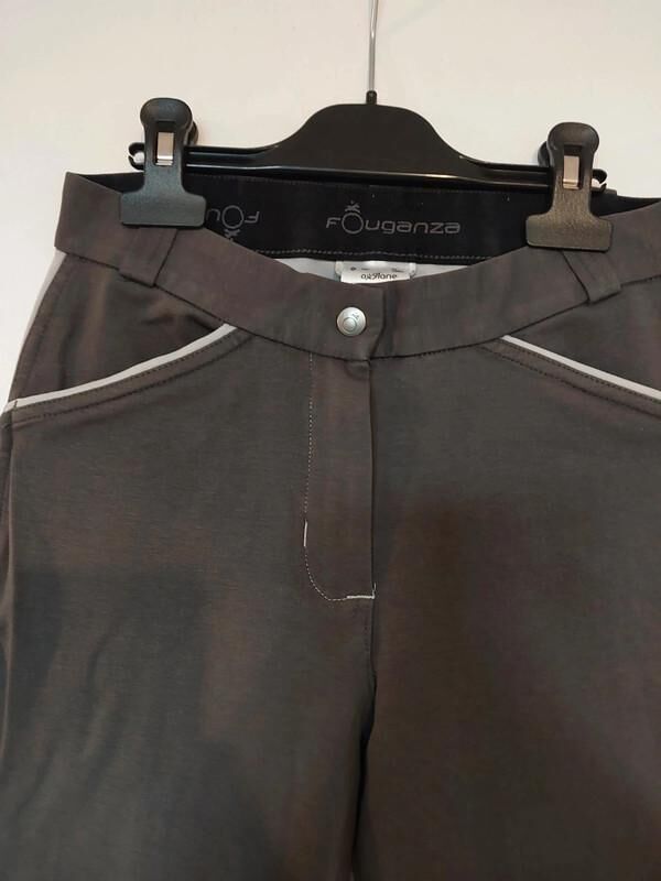 Pantalon d'équitation gris de la marque Fouganza. Renforcement au niveau des genoux et bas en licra. Taille S. Très bon état.
