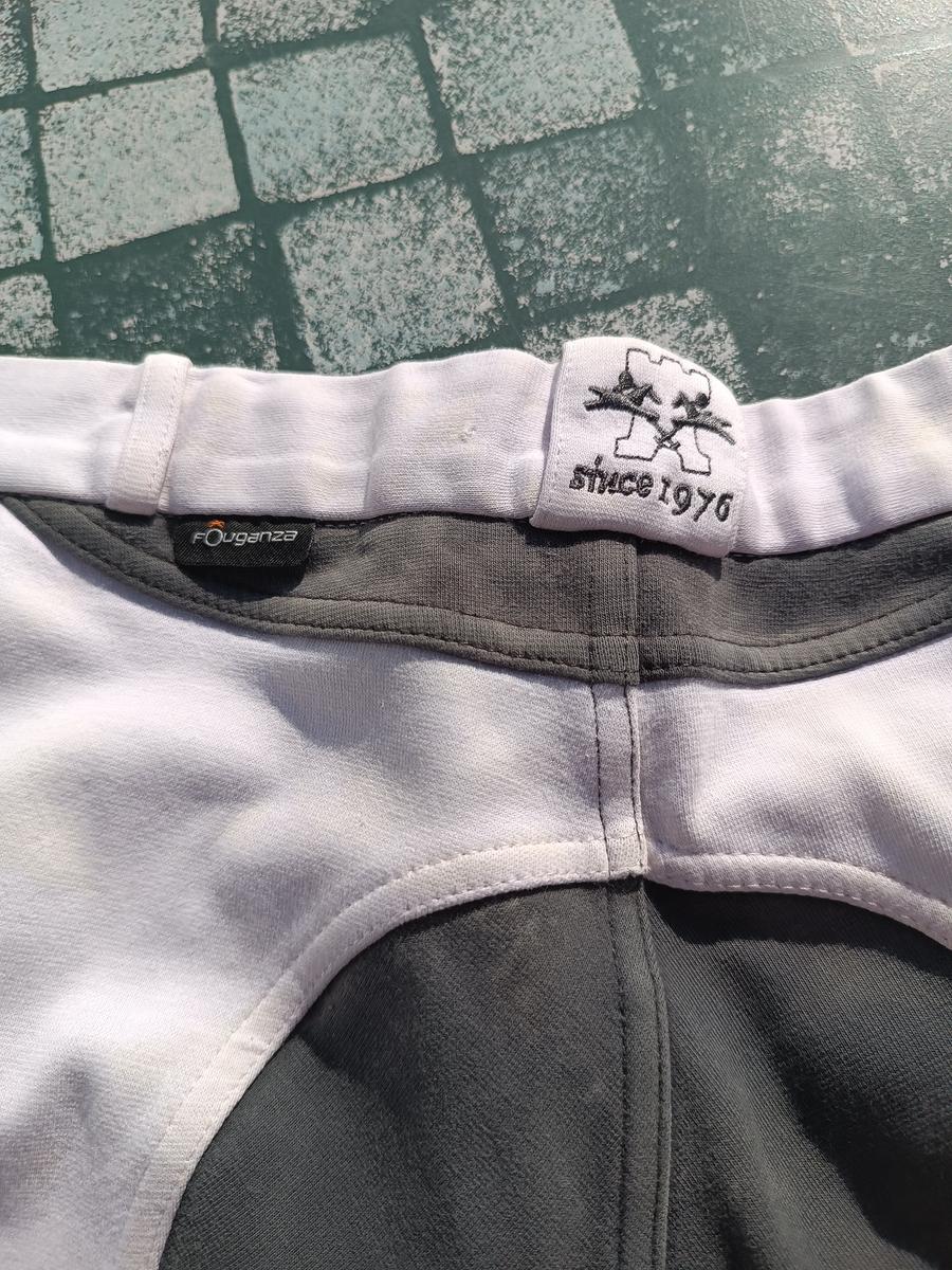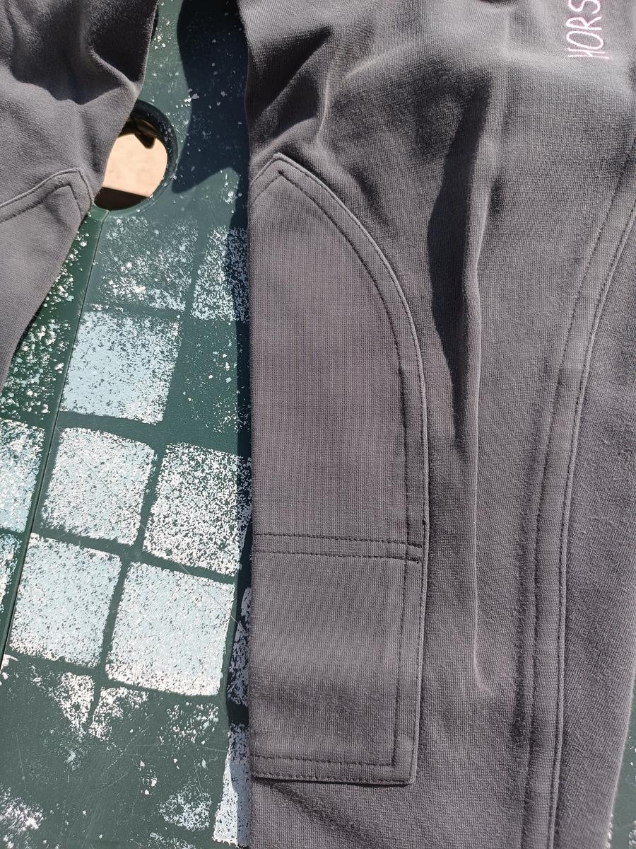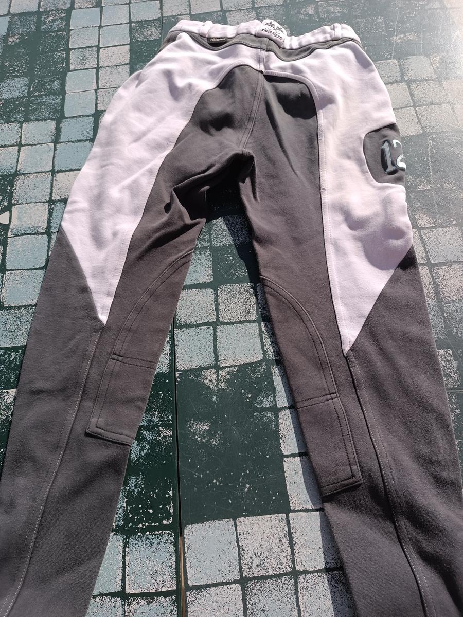 Pantalon d'équitation gris et rose Fouganza. Un mini trou, et quelques traces d'usure.