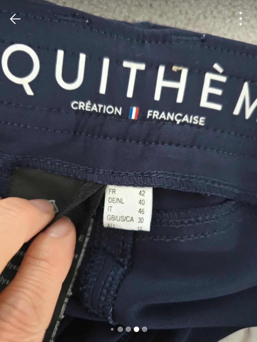 Pantalon equitheme très agréable petite frottement très léger ce voit à peine voir avant derrière photo taille42