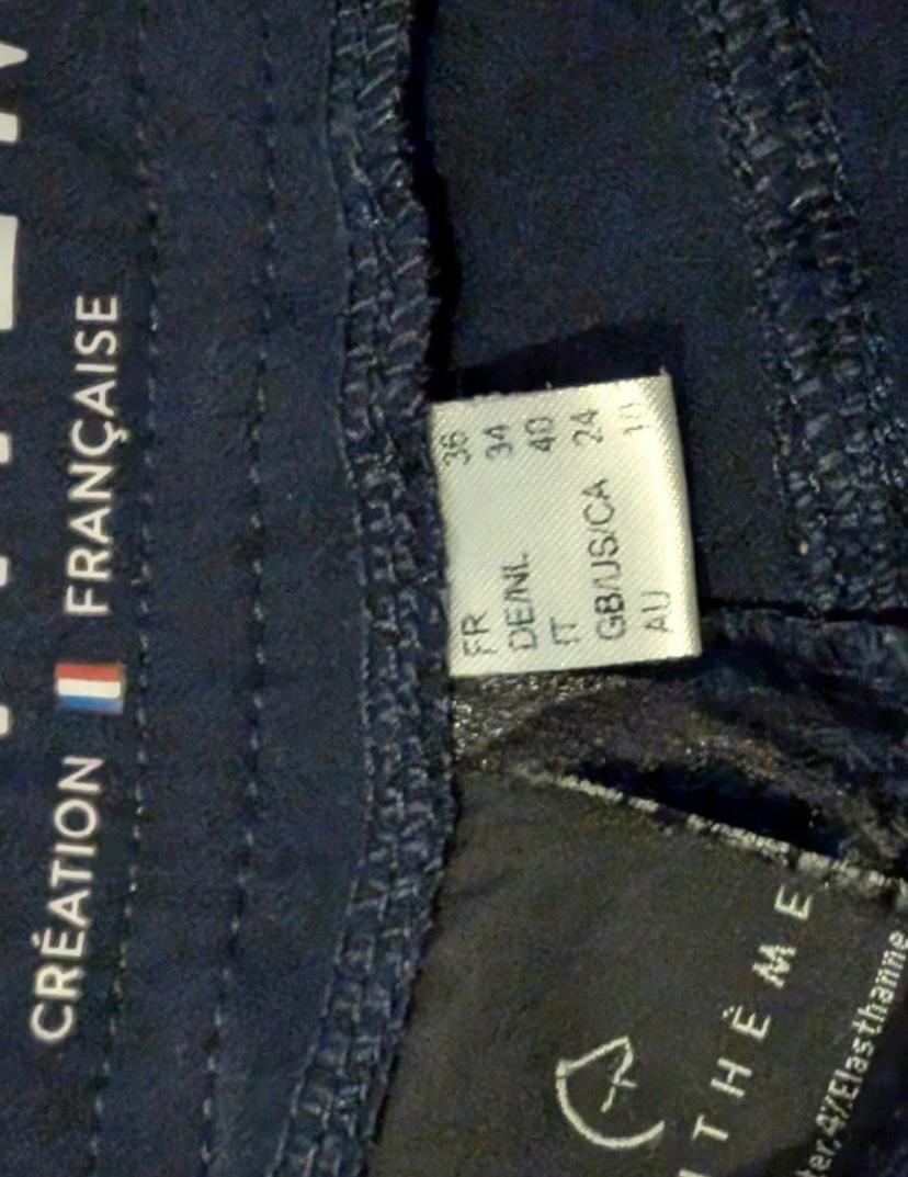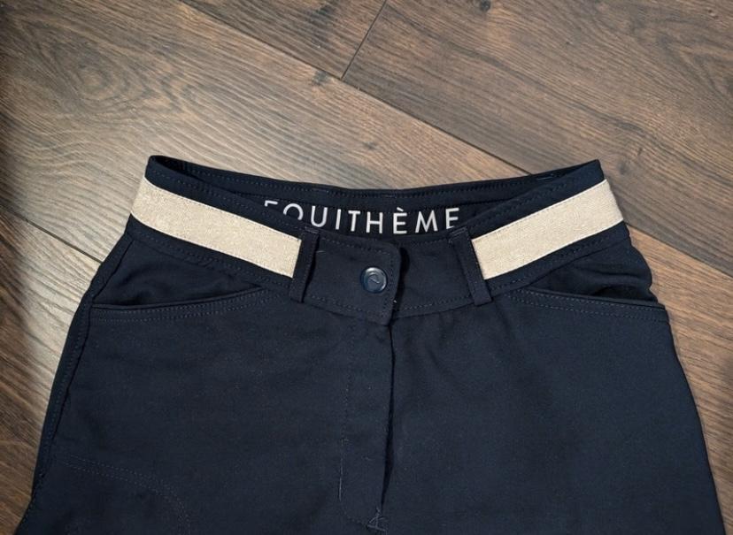 Marque equithème, bleu foncée avec la ceinture dorée.