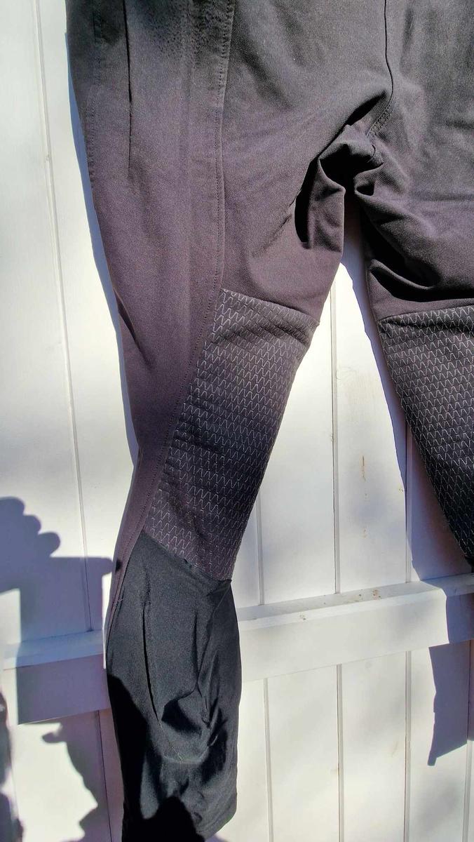 Grips aux genoux, bas de jambe lycra.