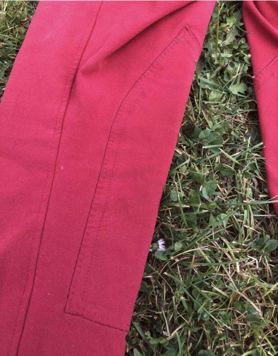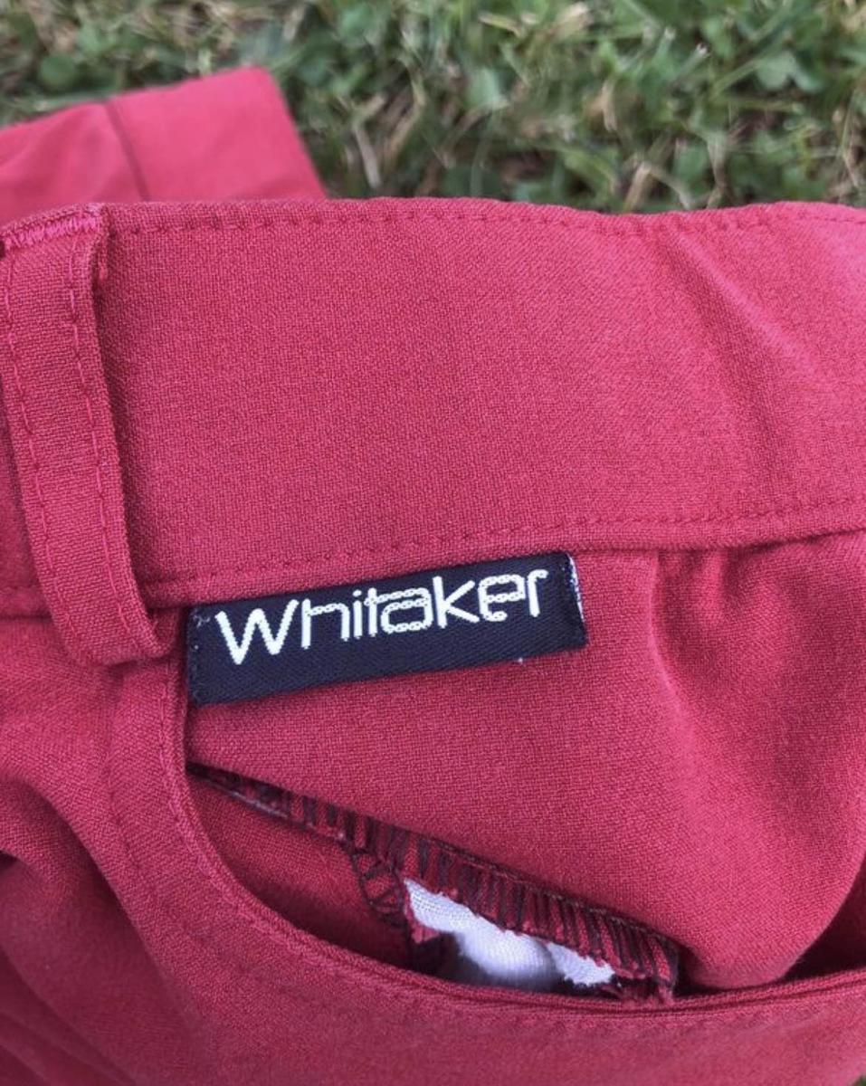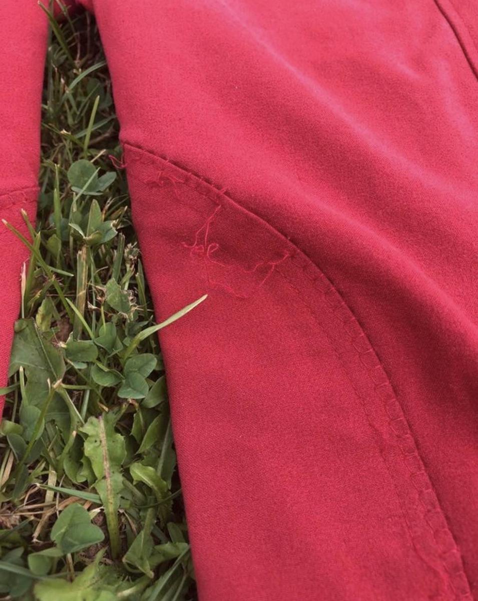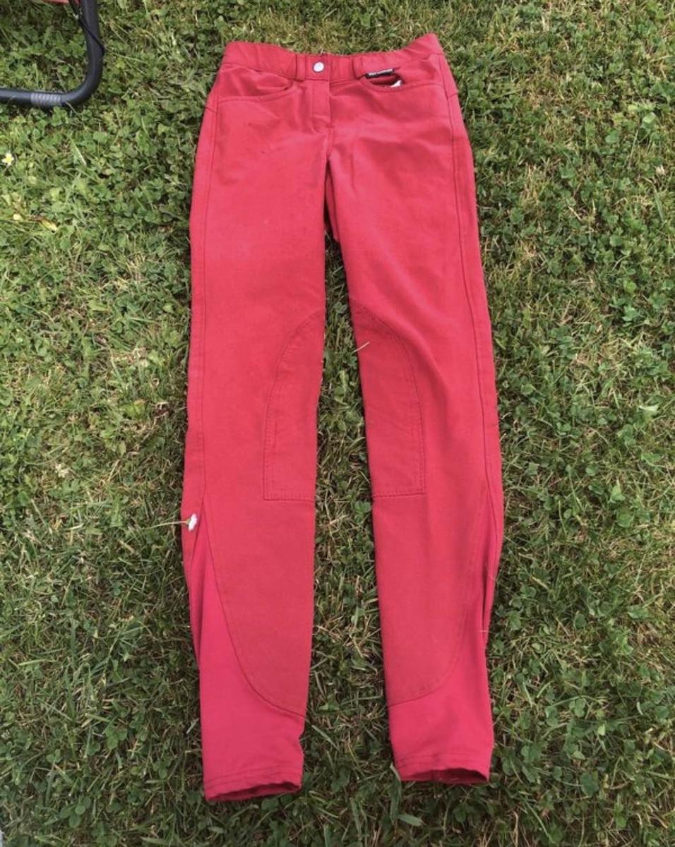 Pantalon d’équitation whitaker rouge à deux petits taches noir devant montrer sur les photos et des taches de la selle à l’arrière monter également sur les photos mais reste en très bonne état taille xxs
