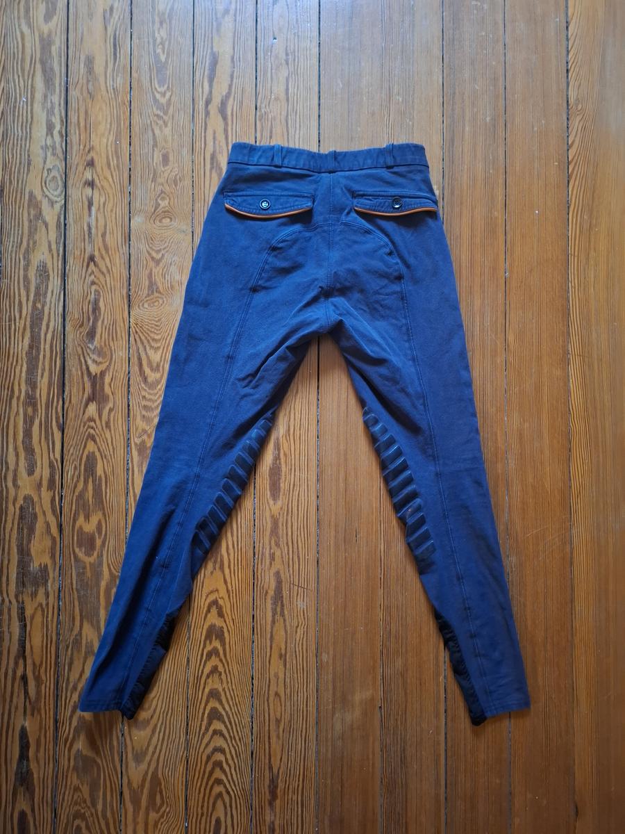 Pantalon Bleu marine liseré orange et strass. Taille 34-36