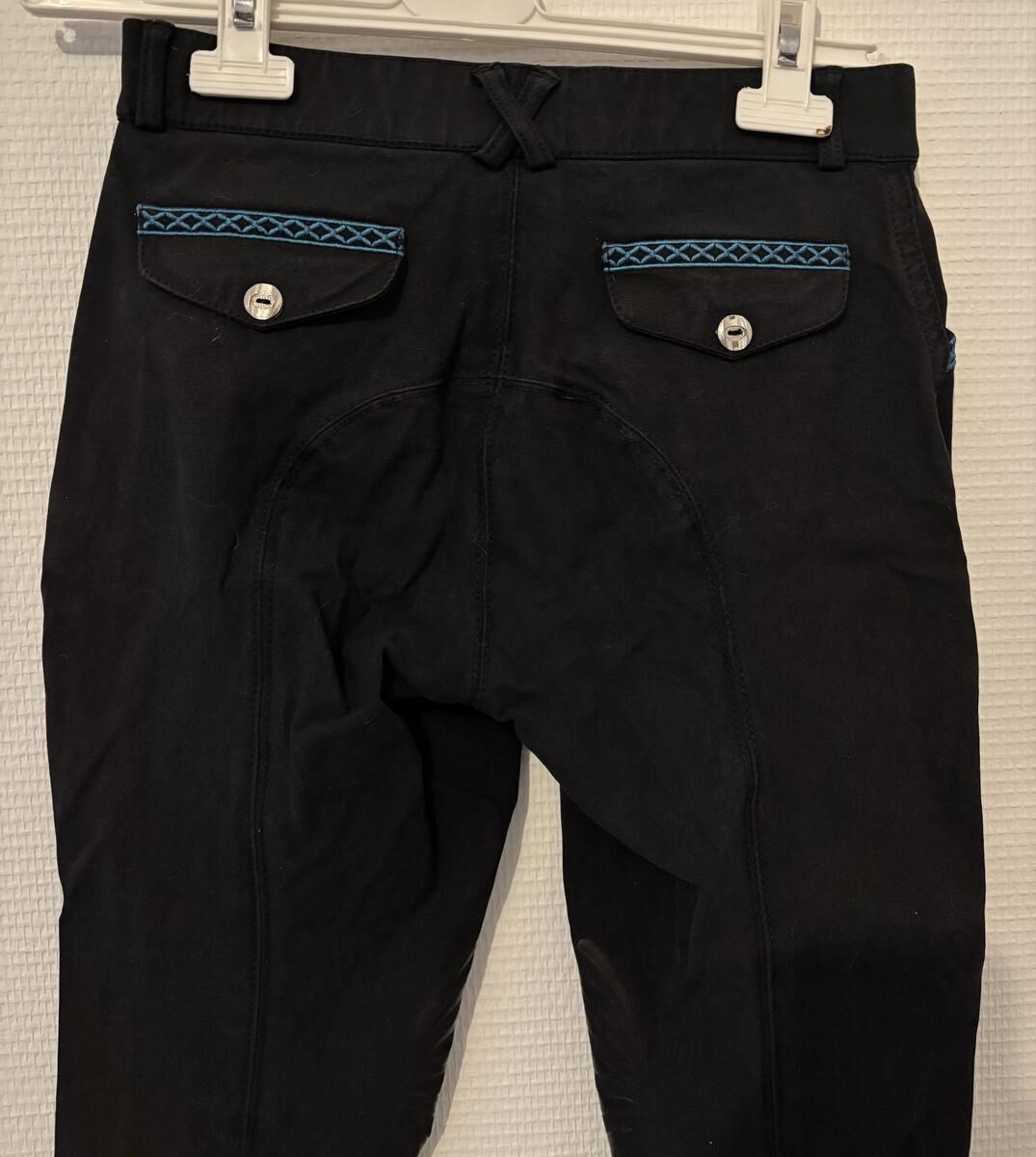 Pantalon Flags&Cup noir avec liseré bleu sur les poches.