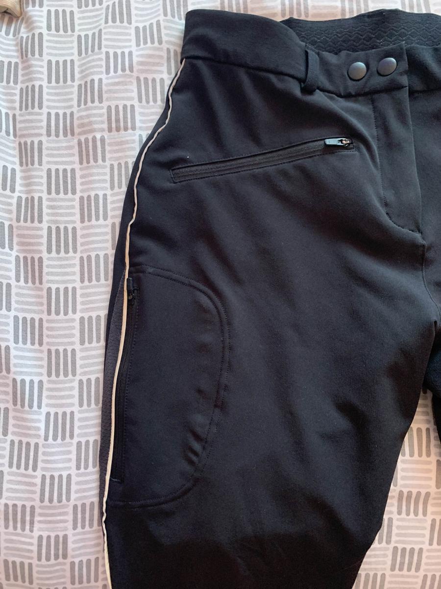 Porté que quelques fois, la bande blanche le long des jambes est réfléchissant. Pantalon un peu taille basse, acheté en M mais taille un peu petit surtout au niveau des genoux, cuisses.
