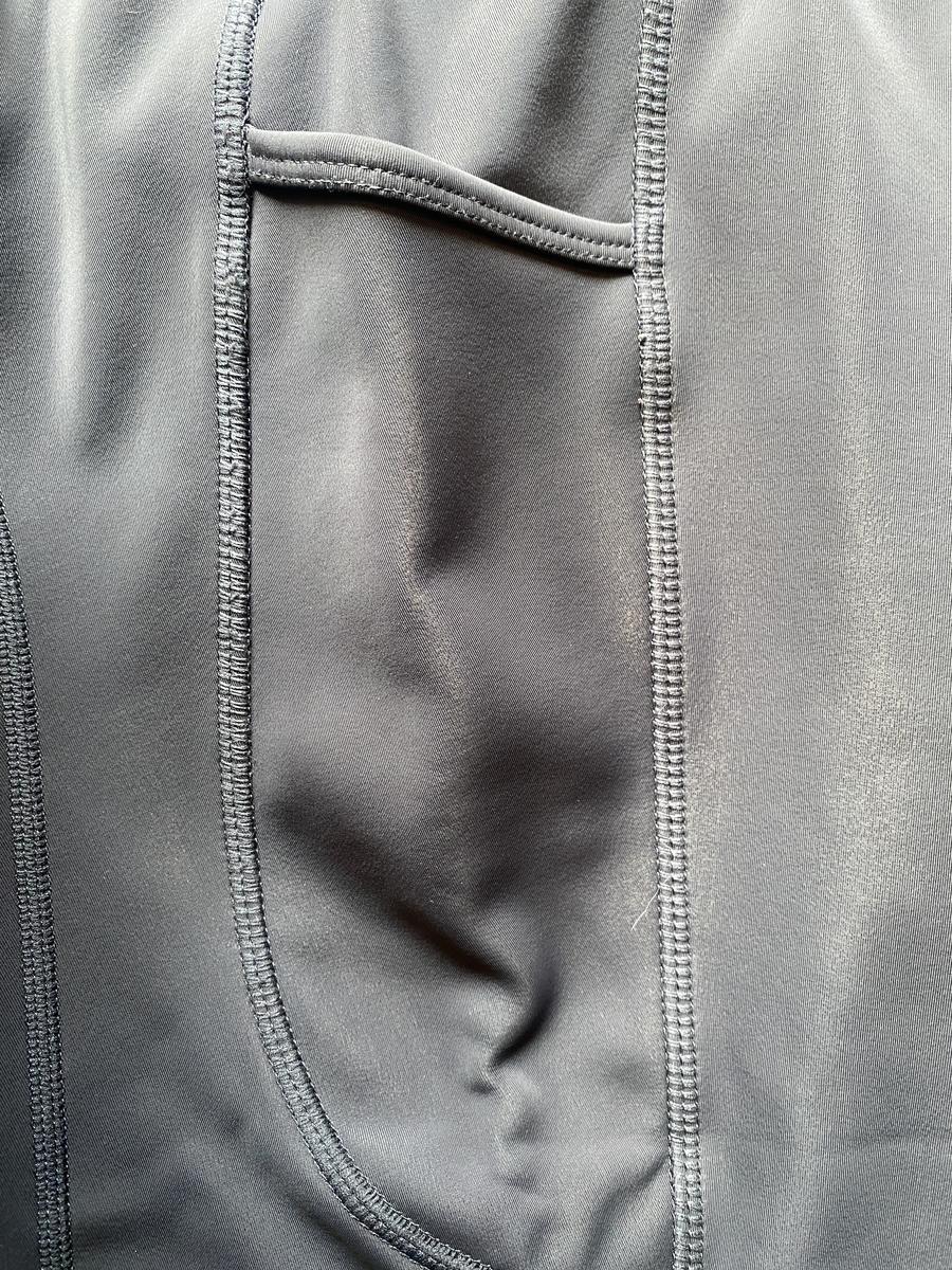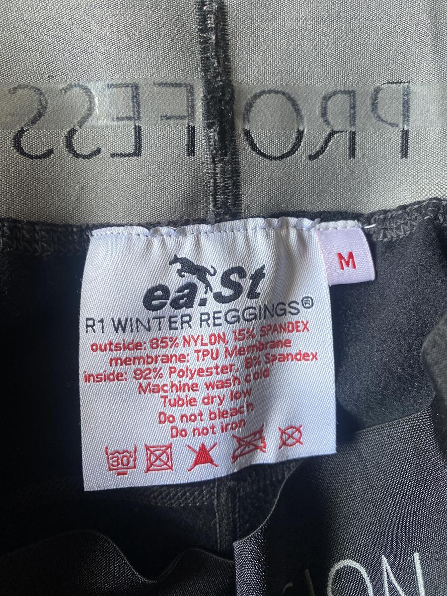 Intérieur polaire, extérieur déperlant, basanes silicone, ceinture élastique, poche pour téléphone.