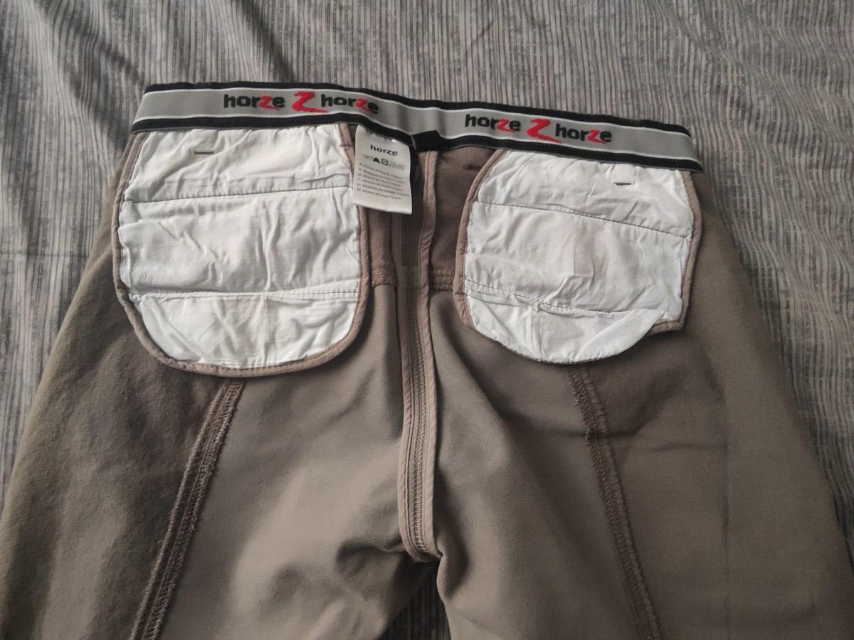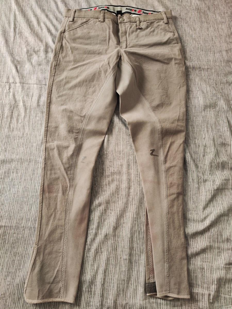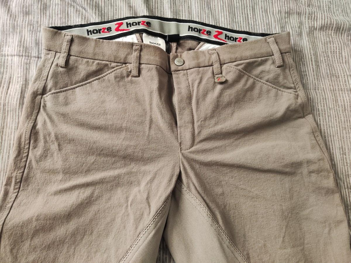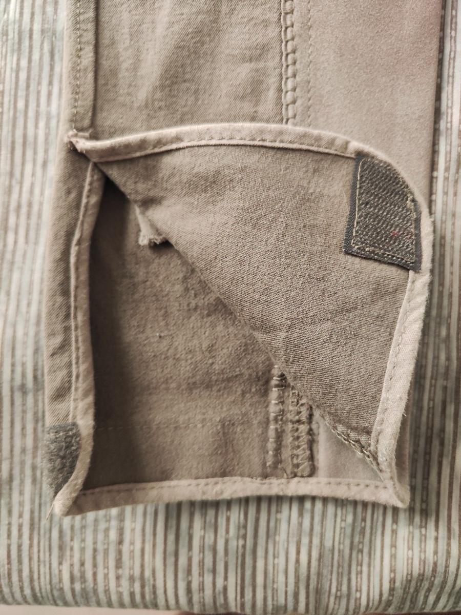 Couleur beige-brun, pas de défauts, propre. 53% coton, 40% Polyamide, 7% Elastane. Porté 2 fois. Très confortable.