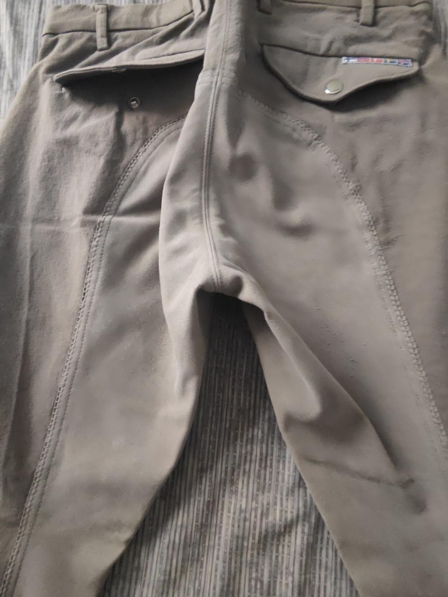 Couleur beige-brun, pas de défauts, propre. 53% coton, 40% Polyamide, 7% Elastane. Porté 2 fois. Très confortable.