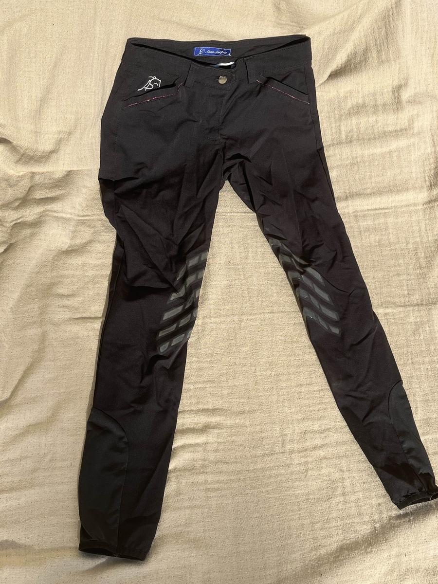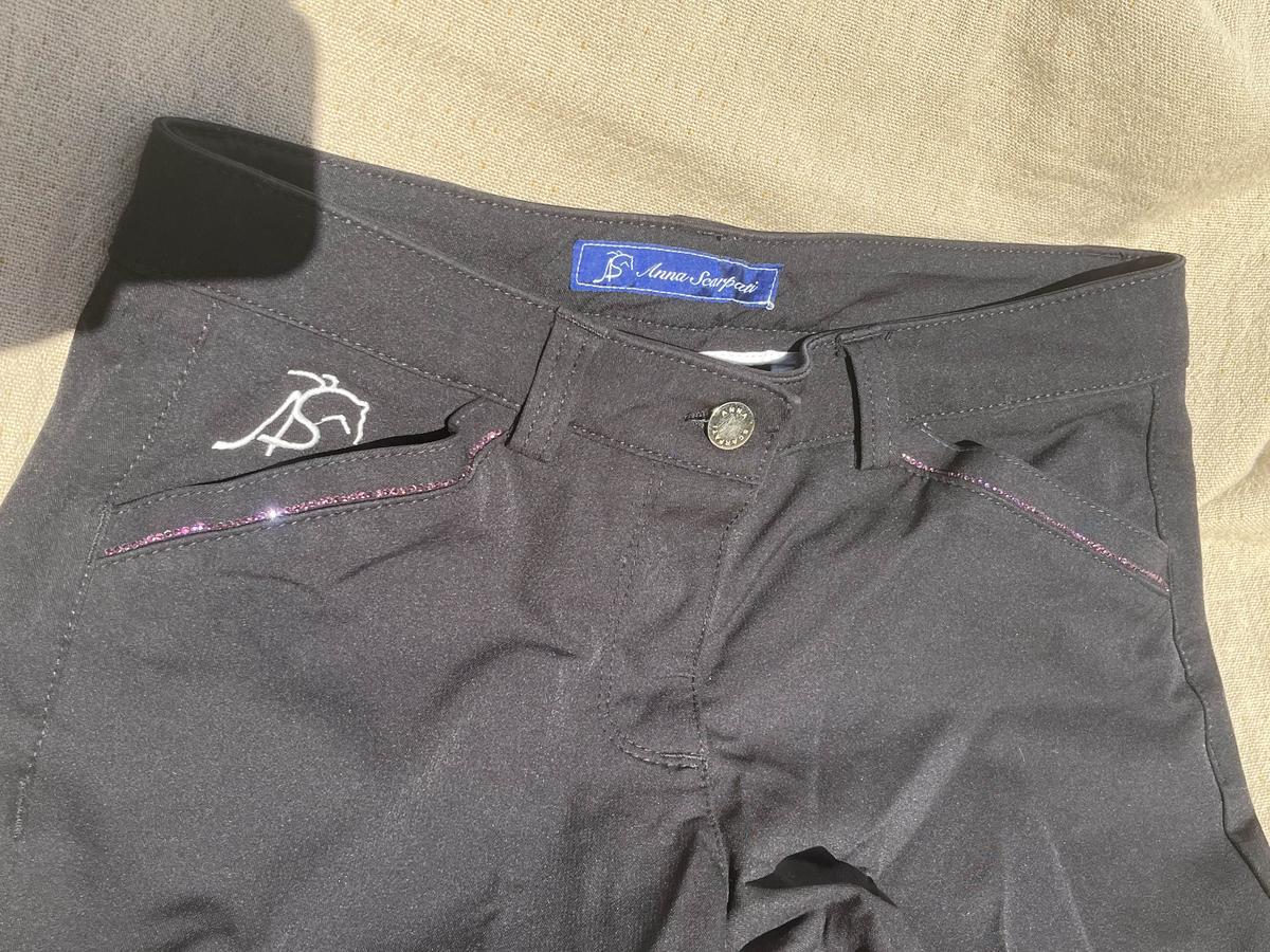 Pantalon noir avec de jolie détail en strass rose sur les poches avant et arrière. 🌸 C’est un taille S, taille un peu basse. Les grippes sont un peu abîmé mais accroche encore très bien. N’hésitez pas pour plus de renseignements.
