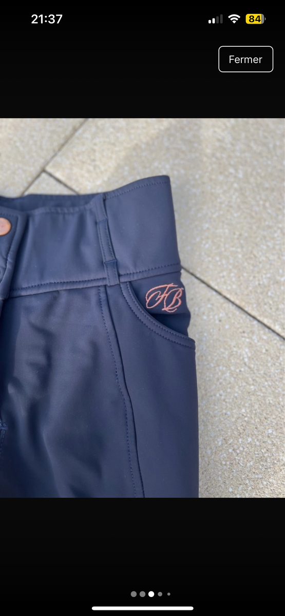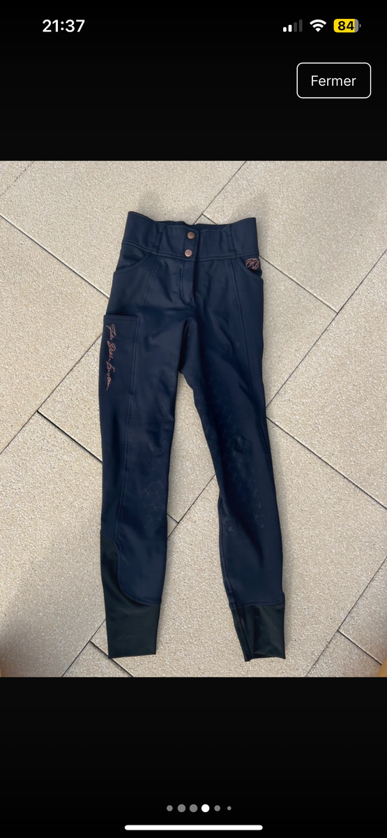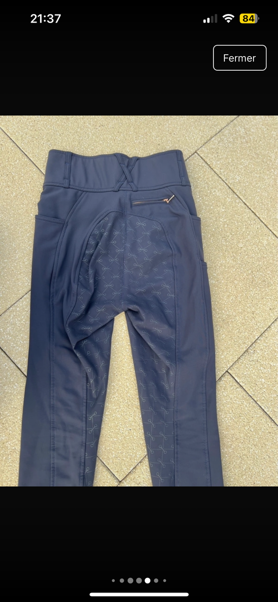 Pantalon d'équitation chaud et extensible. Fond intégral grip en silicone avec motifs de mors. Matière respirante et coupe-vent. Intérieur confortable. Broderie Felix Bühler sur la jambe. Une poche arrière zippée, 2 poches latérales sur la cuisse pour téléphone portable et deux poches avant. Large ceinture élastiquée avec 2 boutons. Aucune couture au niveau des genoux. Bas de jambe extensible en matière stretch.