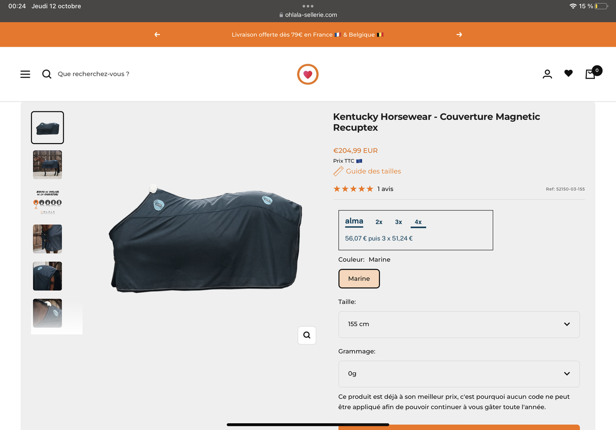 Couverture Magnétique Recuptex en 145, porté 3 fois.
