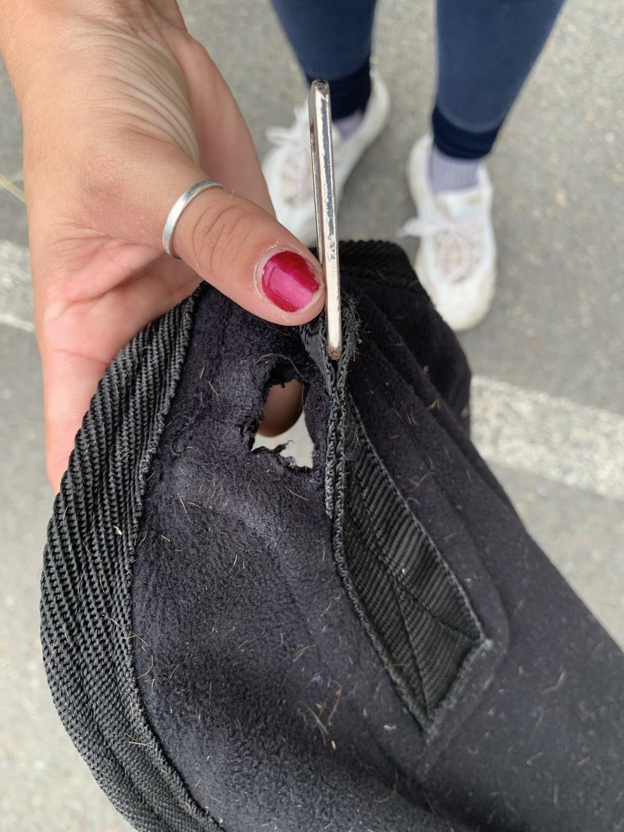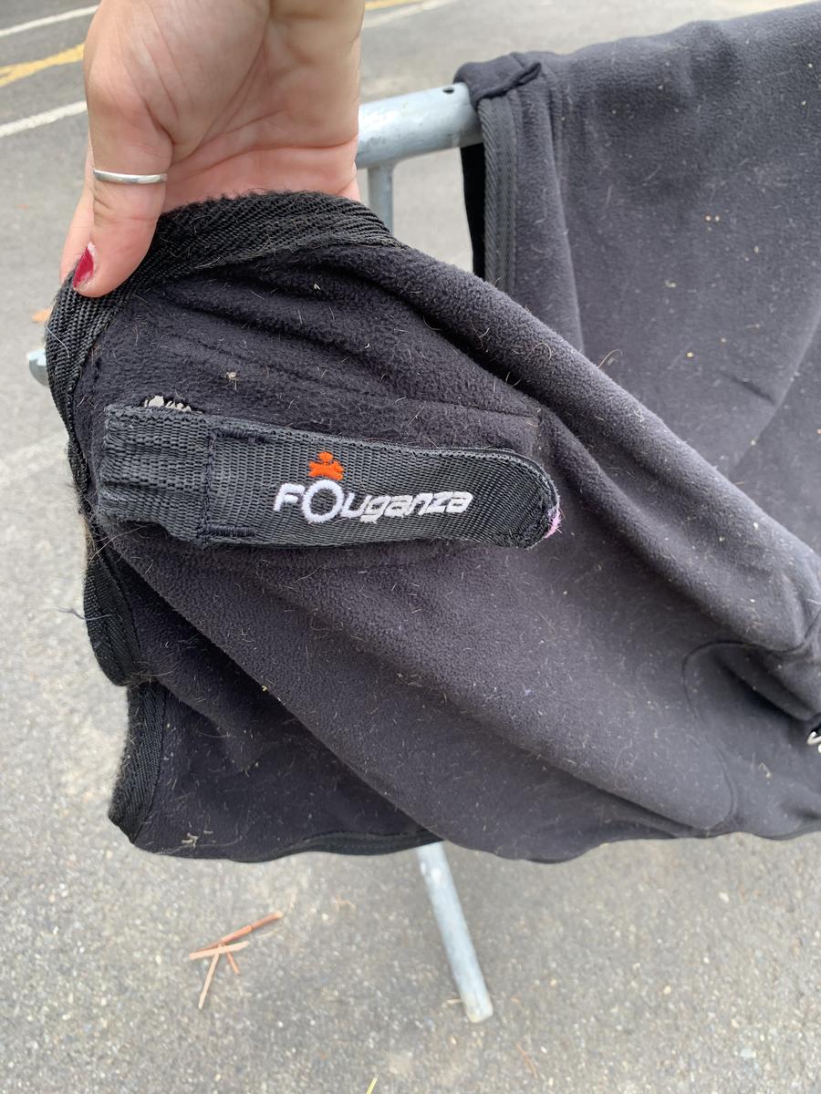 Polaire décathlon. Trouée à l’arrache du poitrail mais n’empêche pas l’utilisation .