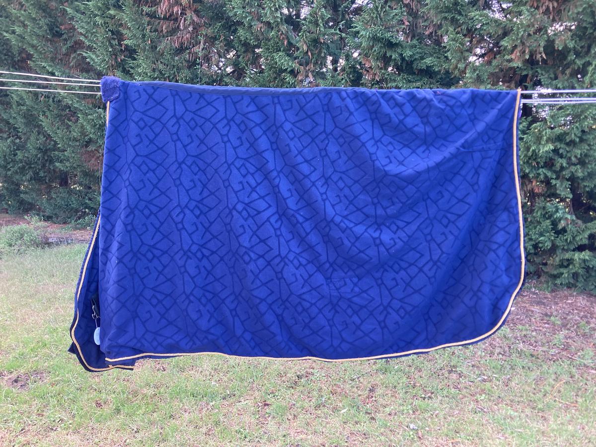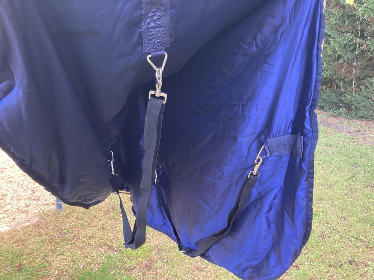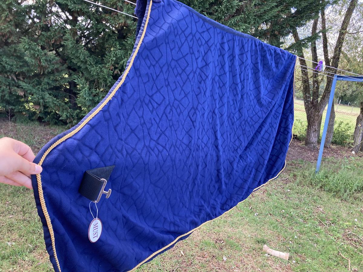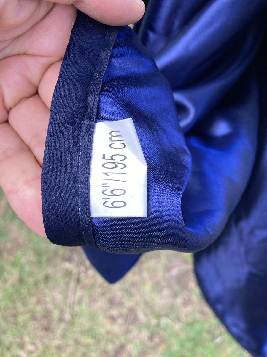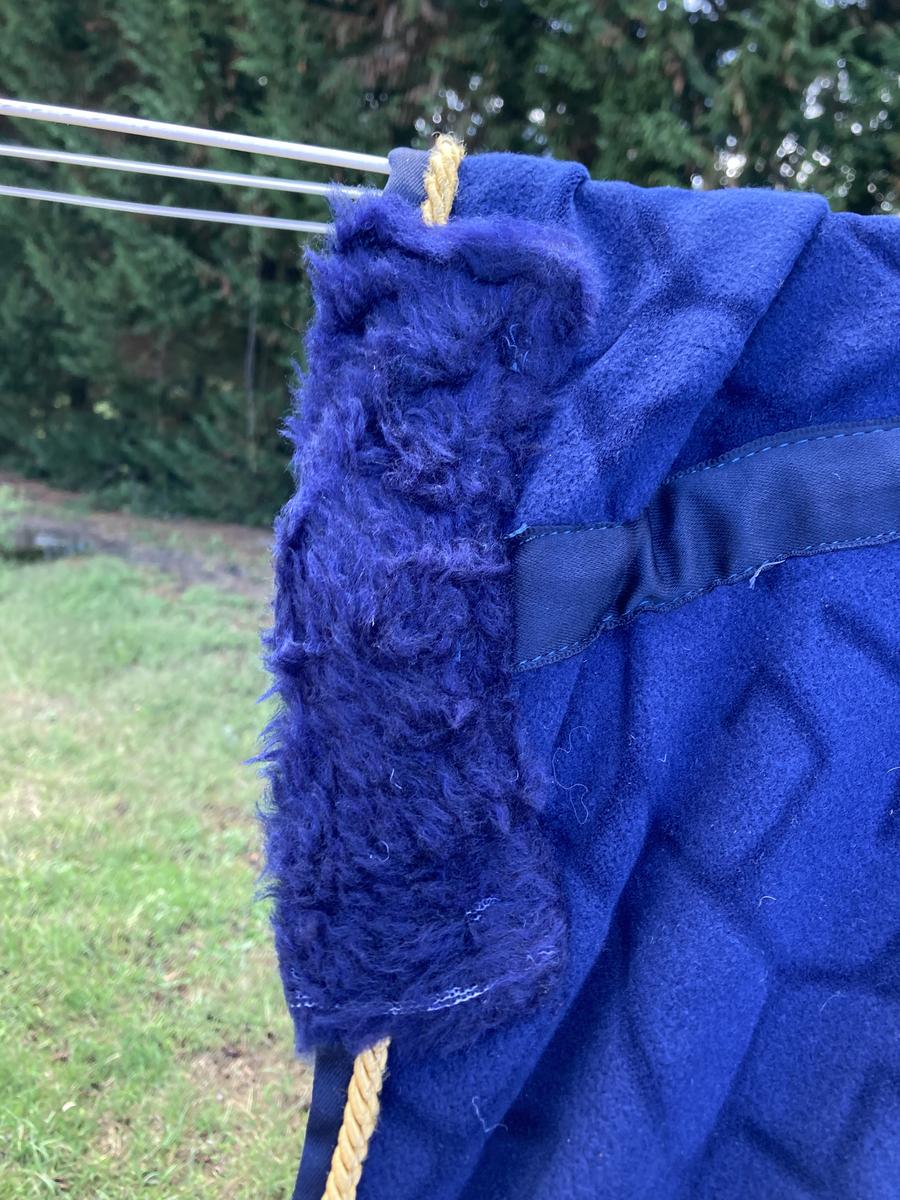 Elle es de couleur bleu marine et l’intérieur et en sorte de satin