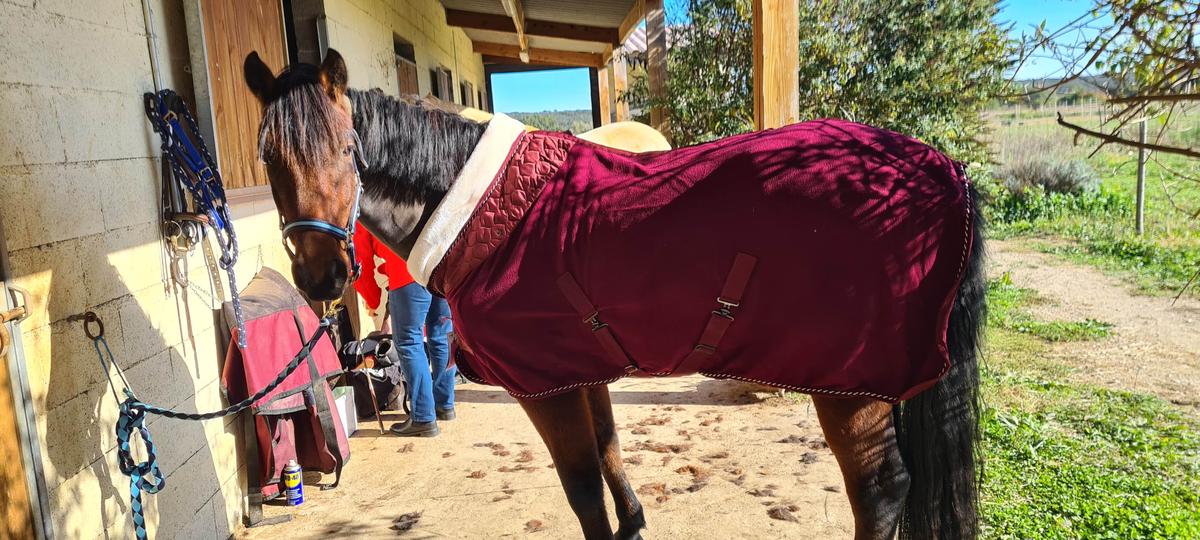 Sur la photo est en bordeaux car je l’ai en taille Poney