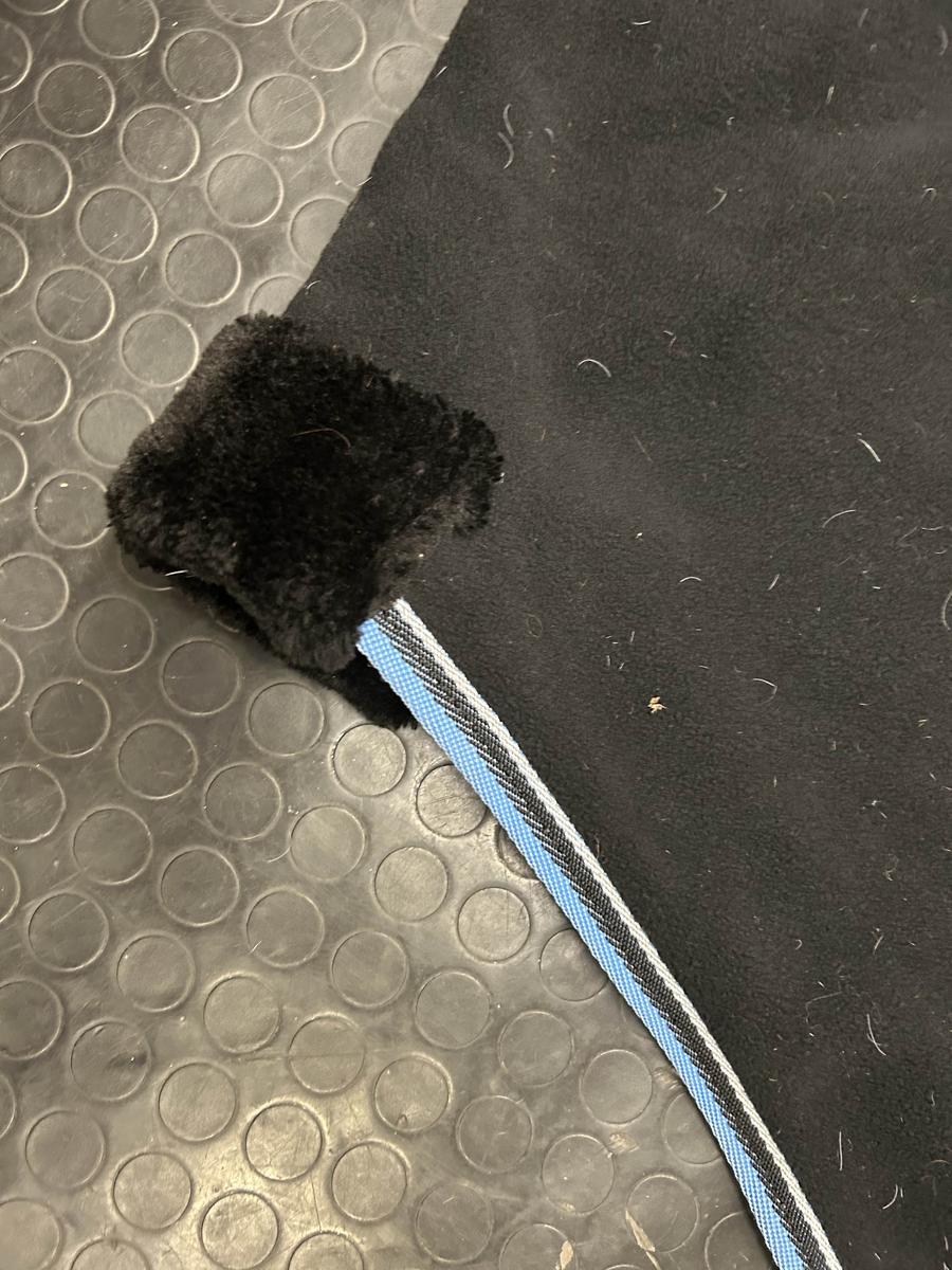 polaire equitheme noire et bleue taille 120cm les poils seront nettoyés avant l’envoi