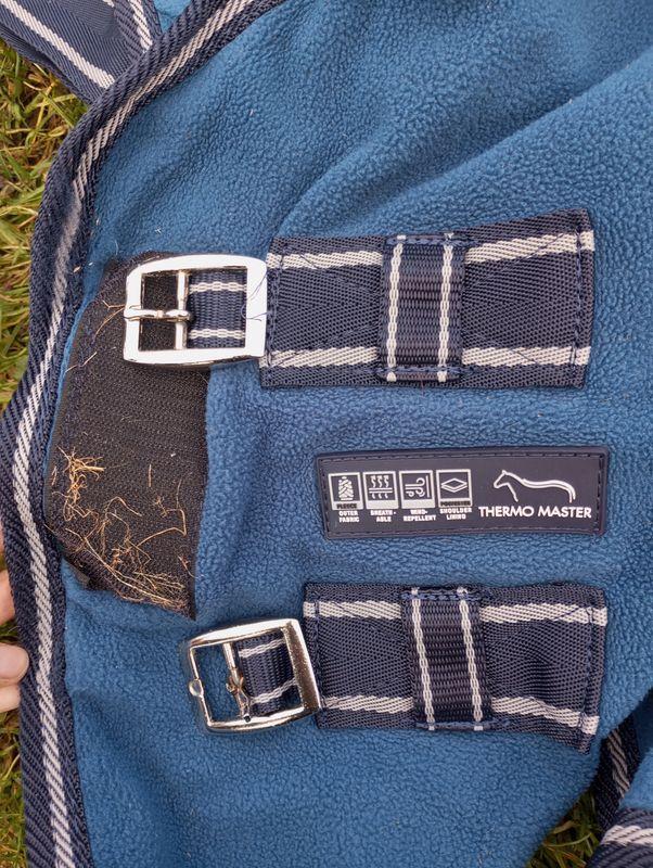 Avec double fermeture de poitrail, sangles croisées, rembourrage polaire au garrot et courroie de queue.