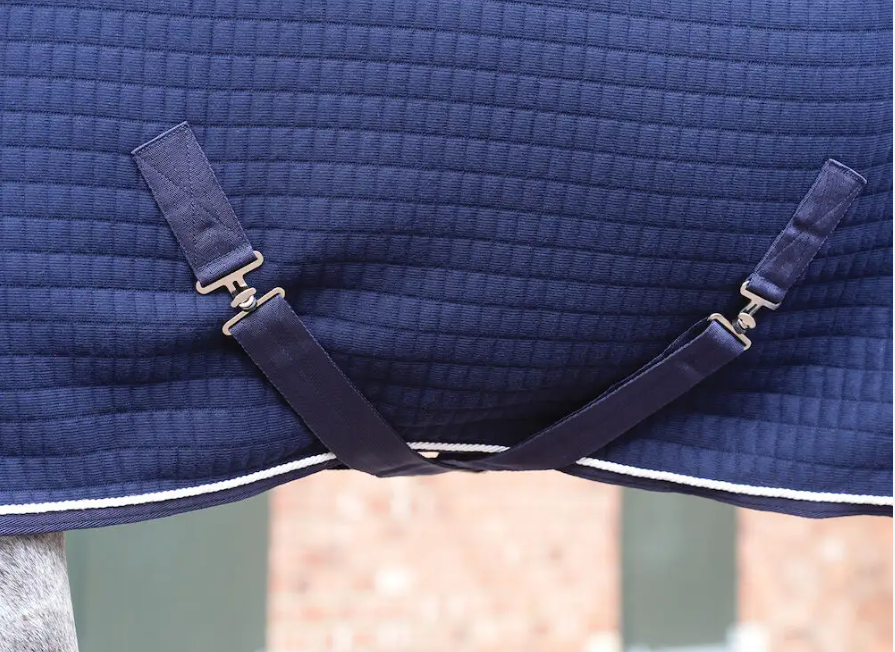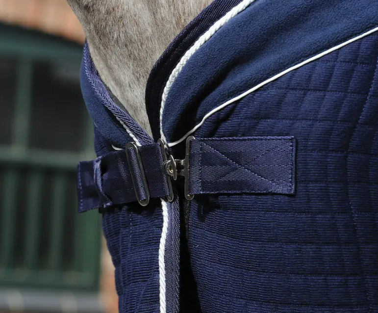 Couverture polaire/séchante taille cheval bleu marine et liseré blanc